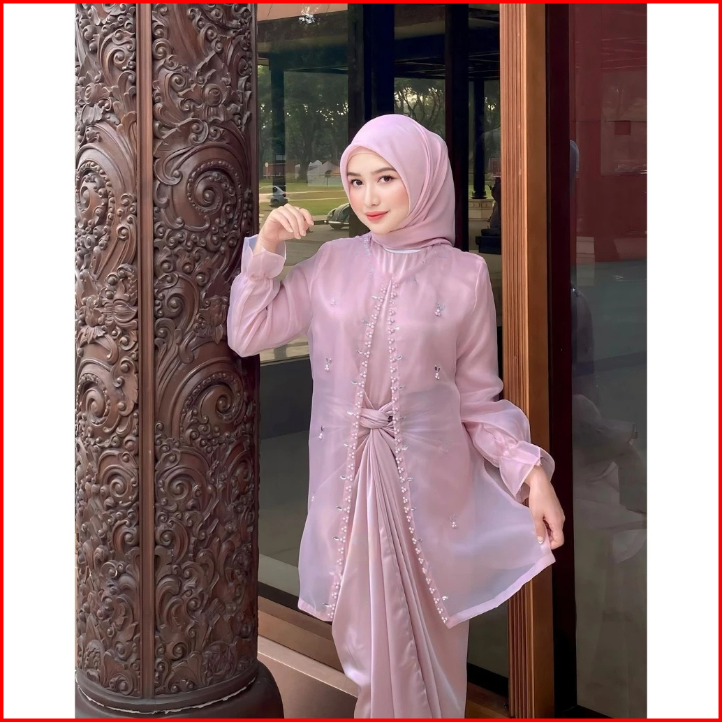 One Set Wanita Kekinian Outer Organza Premium Setelan Kondangan Rok Lilit Outfit Kondangan Kekinian Baju Setelan Wanita