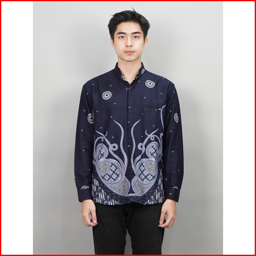 Swipe Up Kemeja Batik Pria Modern Jumbo Lengan Panjang Night