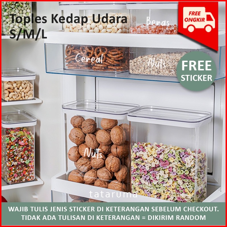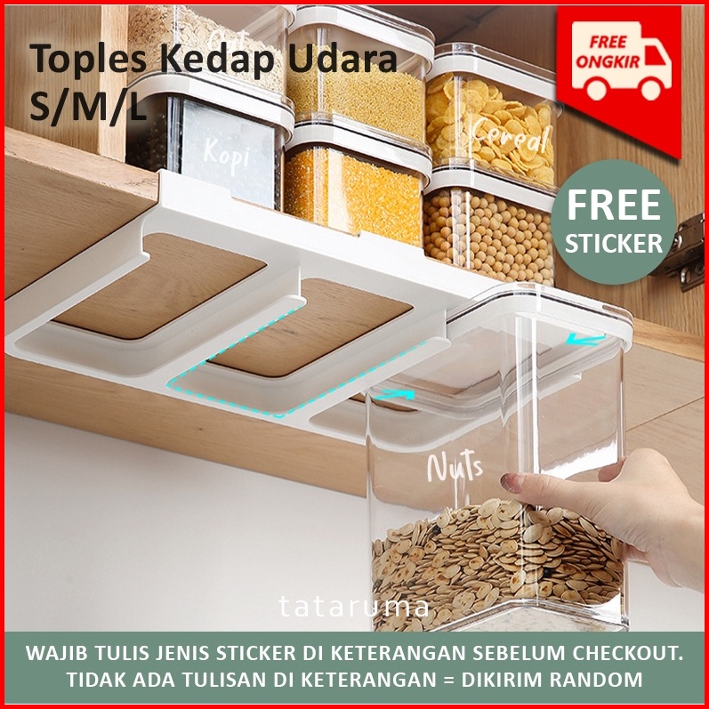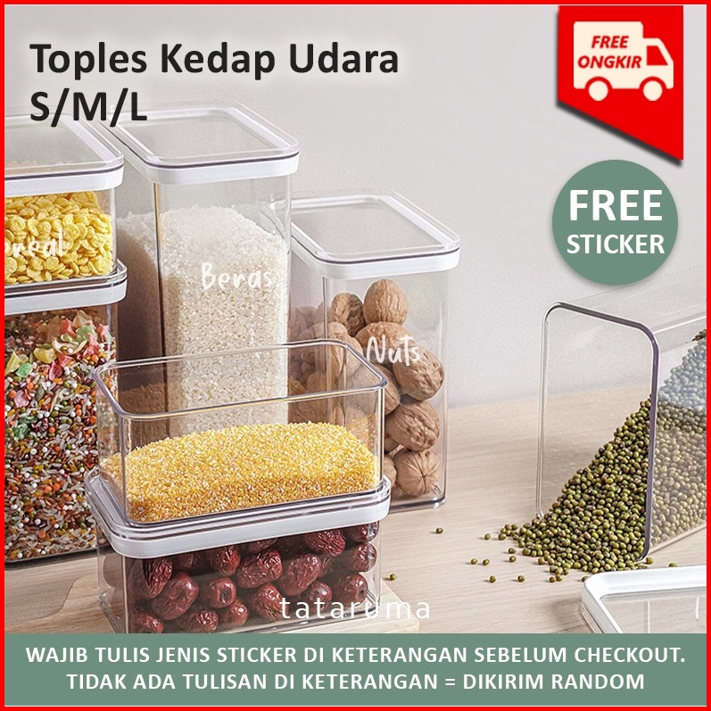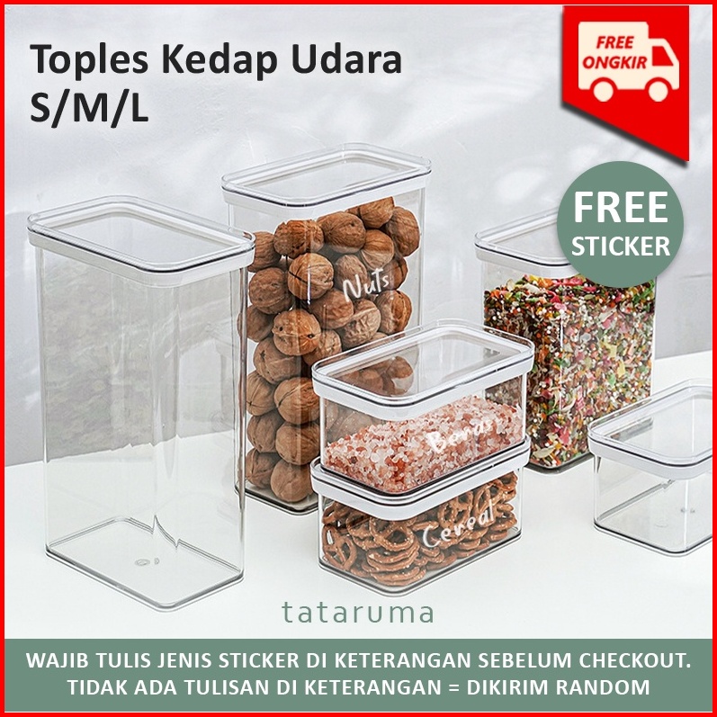 Tataruma Hika - Toples Transparan Kedap Udara Airtight Minimalis Kotak Kontainer Tempat Penyimpanan Makanan Sayur Buah D