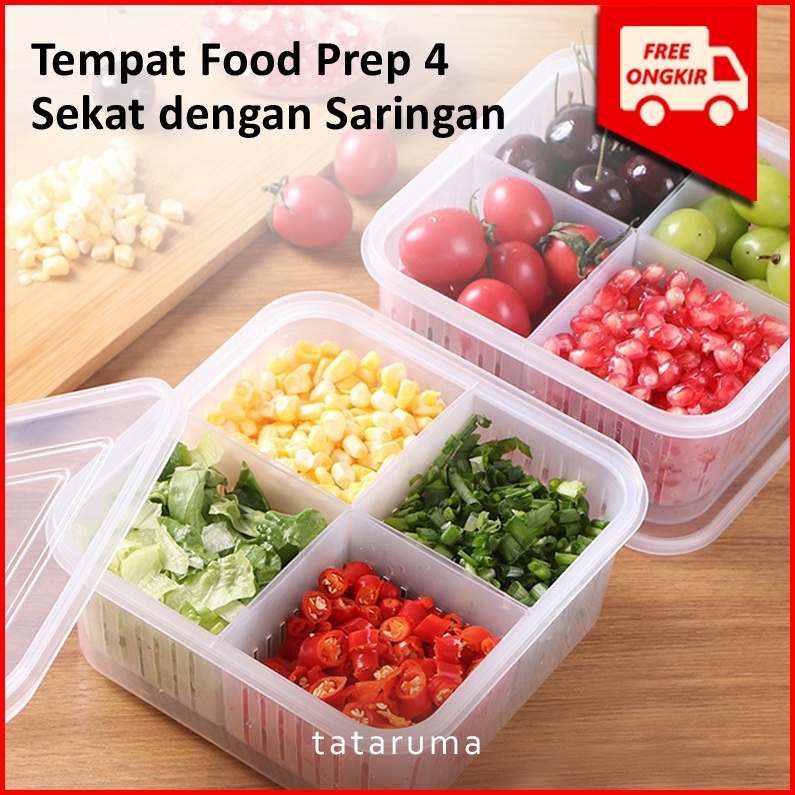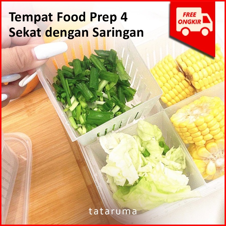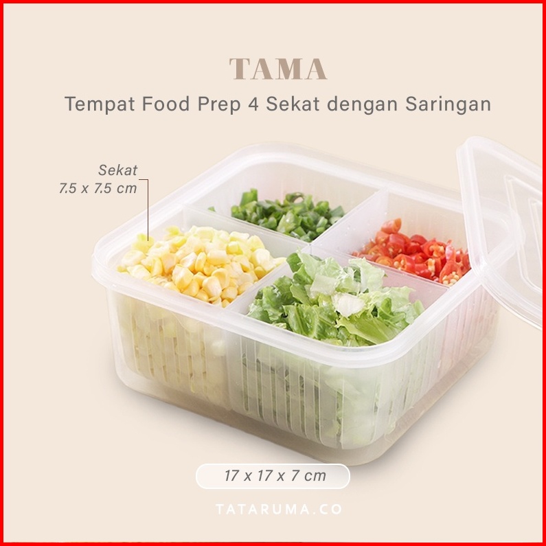 Tataruma Tama Sekat - Tempat Food Prep Bawang Cabai 4 Sekat Dengan Saringan