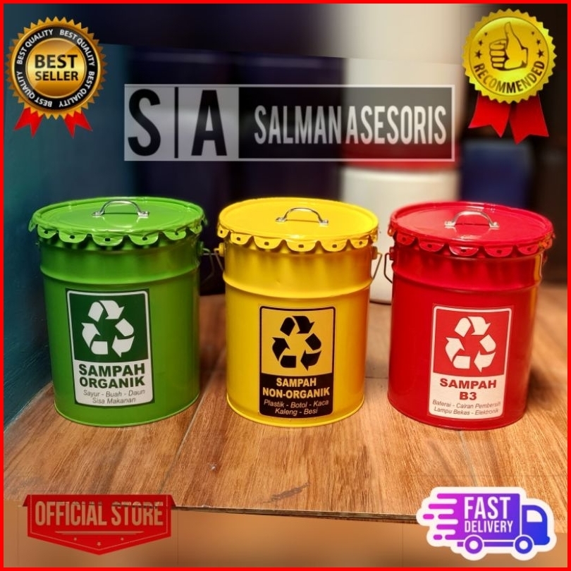 Putih, Hitam, Kuning, Hijau, Biru, Pink, Orange, Merah, Ungu, Coklat, Abu abu, Polos, Putih logo, Hitam logo, Kuning logo, Hijau logo, Biru logo, Pink logo, Oranye logo, Merah logo, Ungu logo, Coklat logo, Abu logo, Organik, Non Organik, B3, Medis, Non Medis, Logam, Residu, Tiang 1 lubang, Tiang 2 Lubang, Tiang 3 Lubang