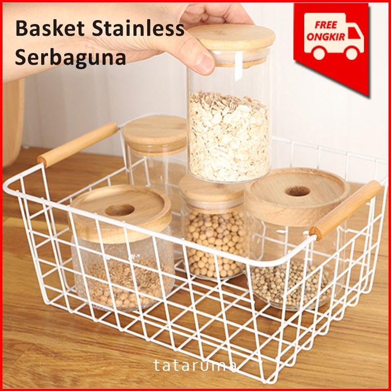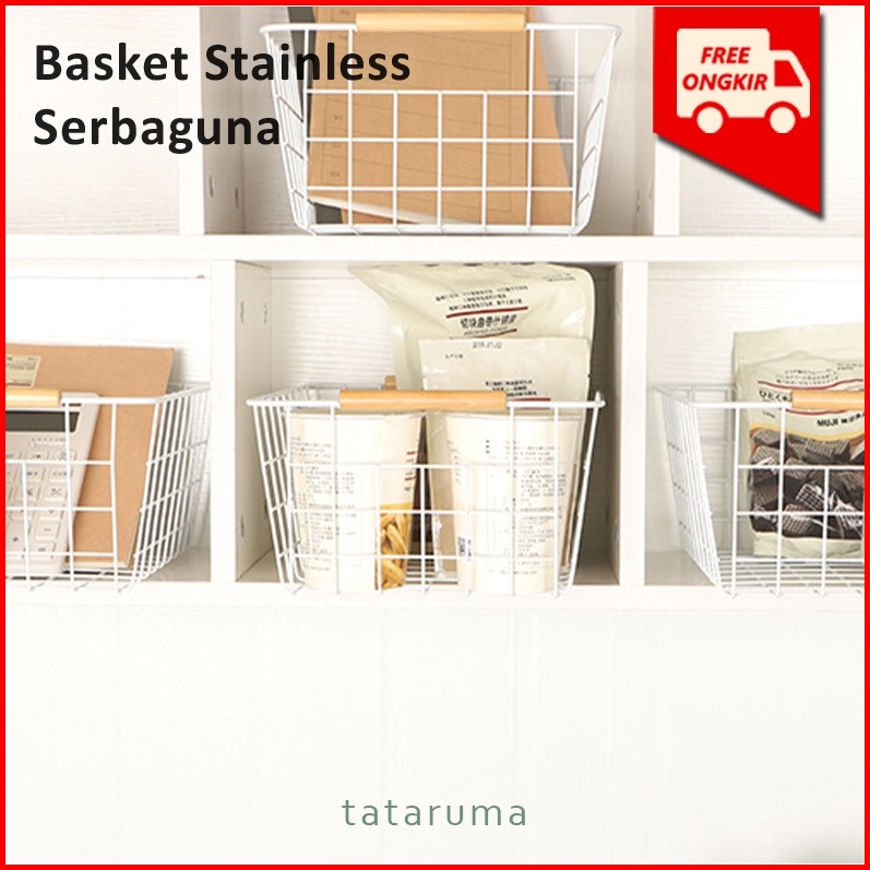 Tataruma Kusumi - Basket Stainless Serbaguna Tempat Penyimpanan Keranjang Makanan Ringan Besi Ala Jepang Korea Dengan Ha