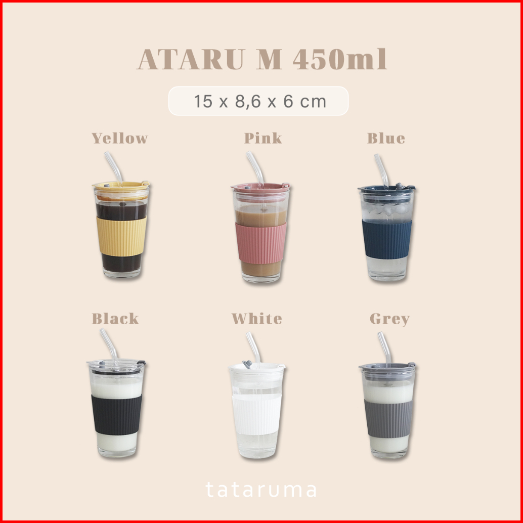 Tataruma Ataru - Tumbler Gelas Kaca Tahan Panas Dingin Anti Bocor 350ml 450ml