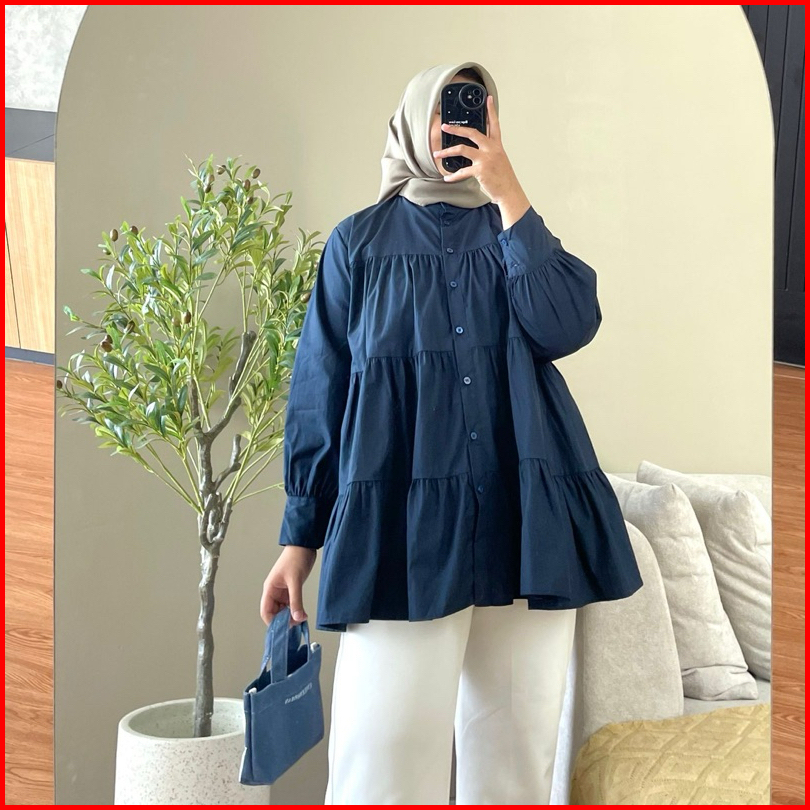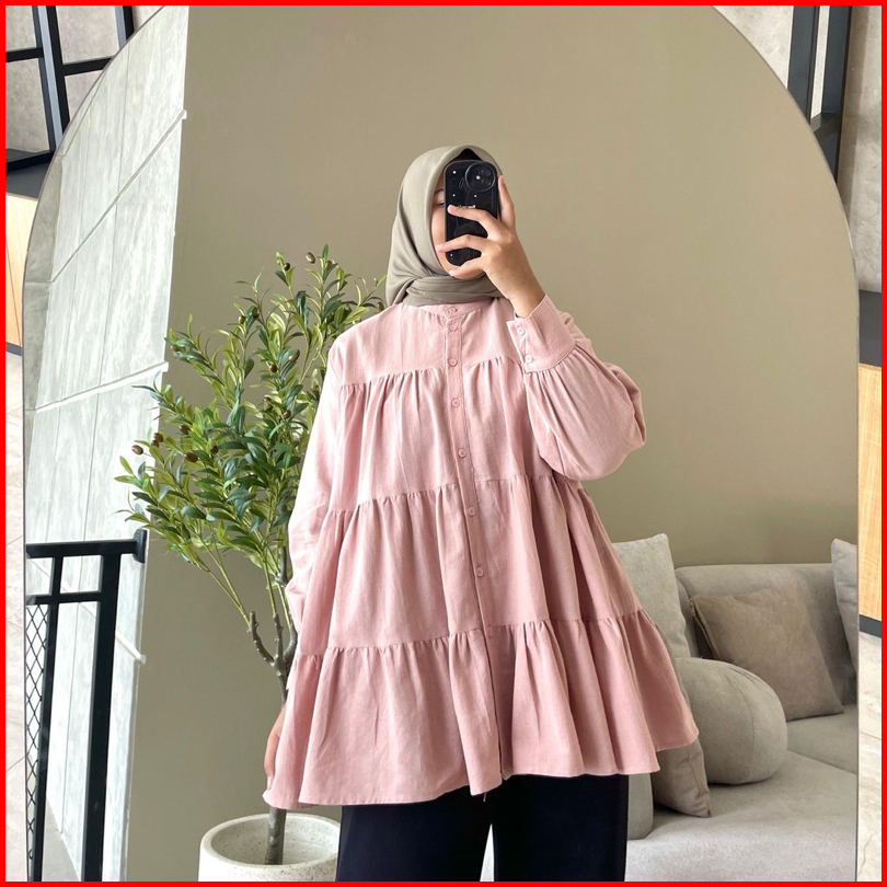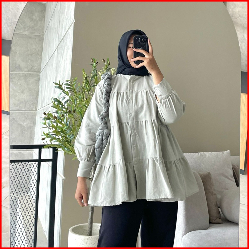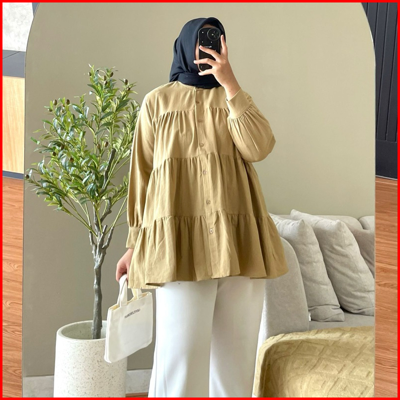 Hanako 18 Linen Shirt Kemeja Wanita Rempel Polos Kemeja Kerah Shanghai Blus Wanita