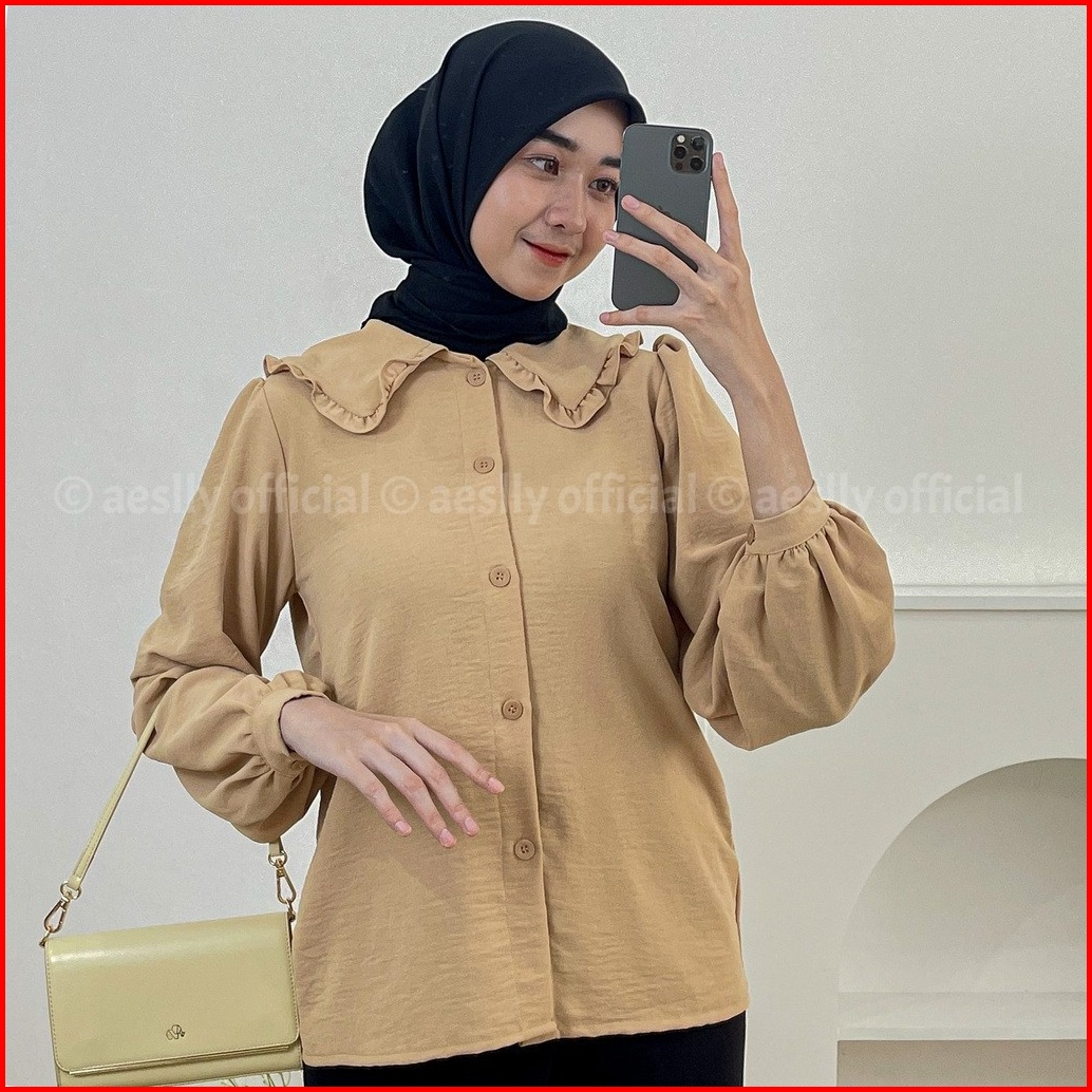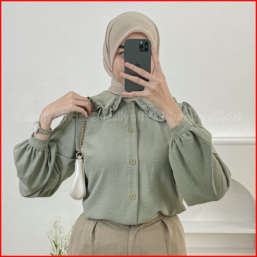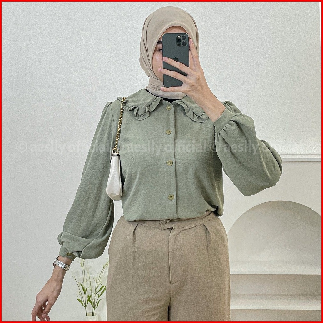 Aeslly - Mannis Blouse Lengan Panjang Balon Atasan Wanita Crinkle Cey Airflow Blouse Wanita Termurah
