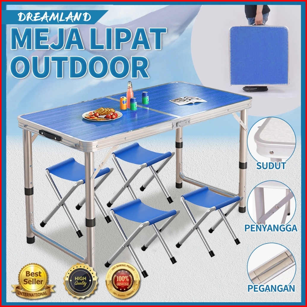 Meja Lipat Meja Belajar Meja Koper Aluminium 60x120 Cm 0 2 4 Kursi Meja Serbaguna Portable