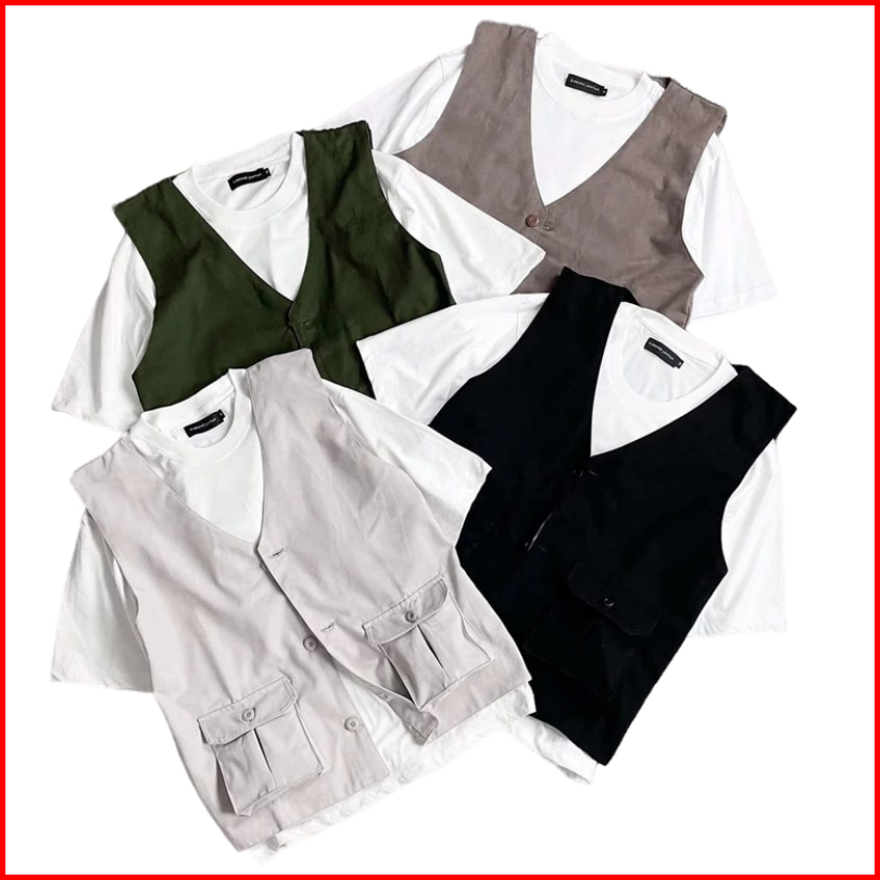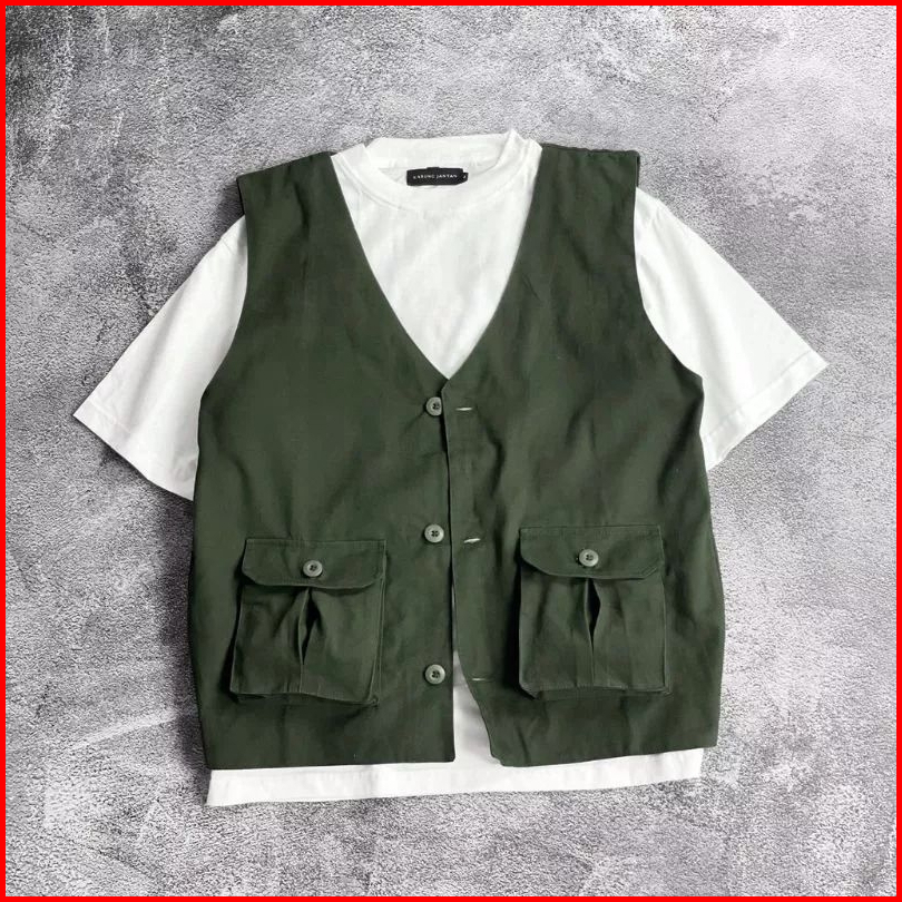 Rompi Vest Cargo Pria Wanita Unisex American Drill