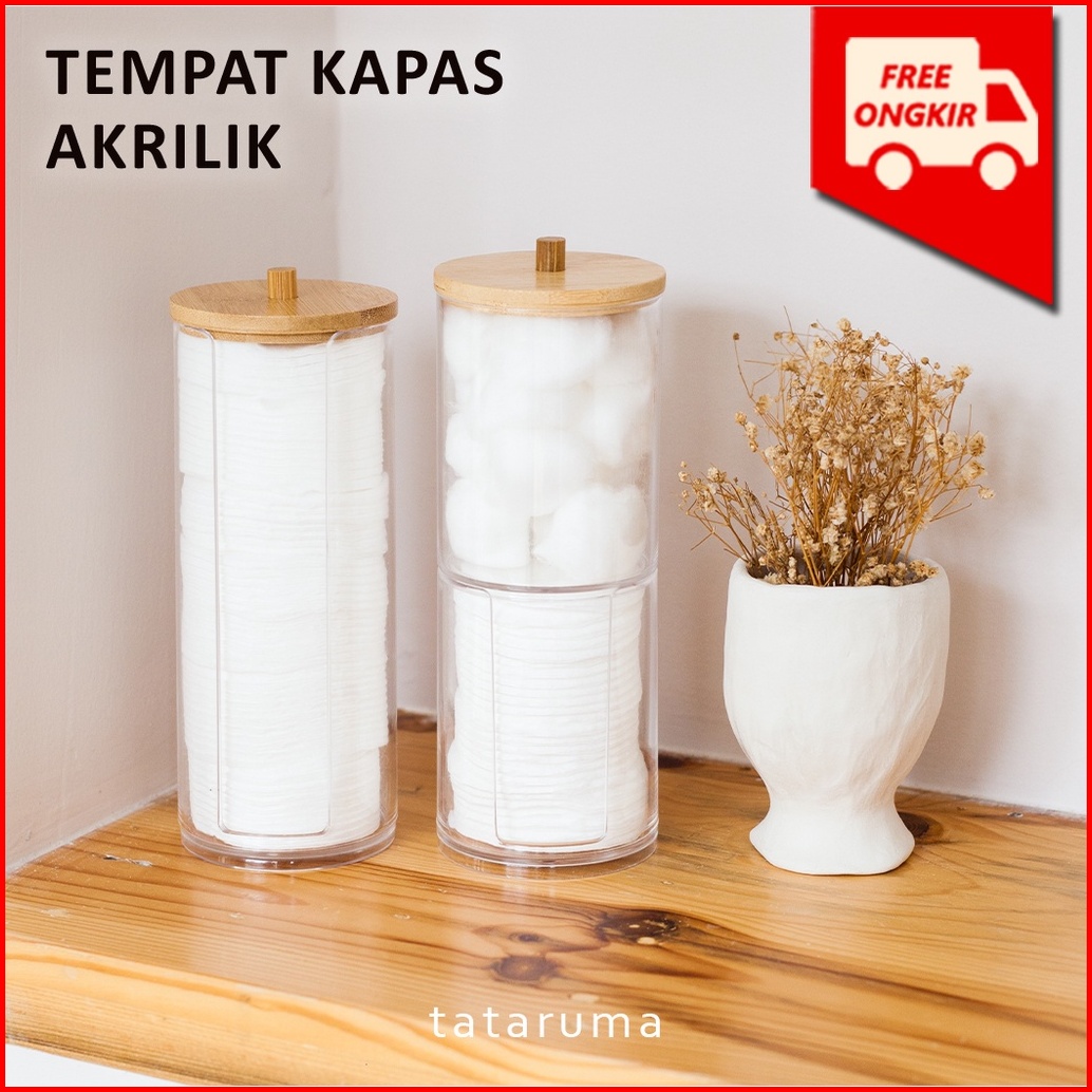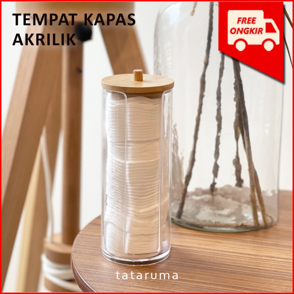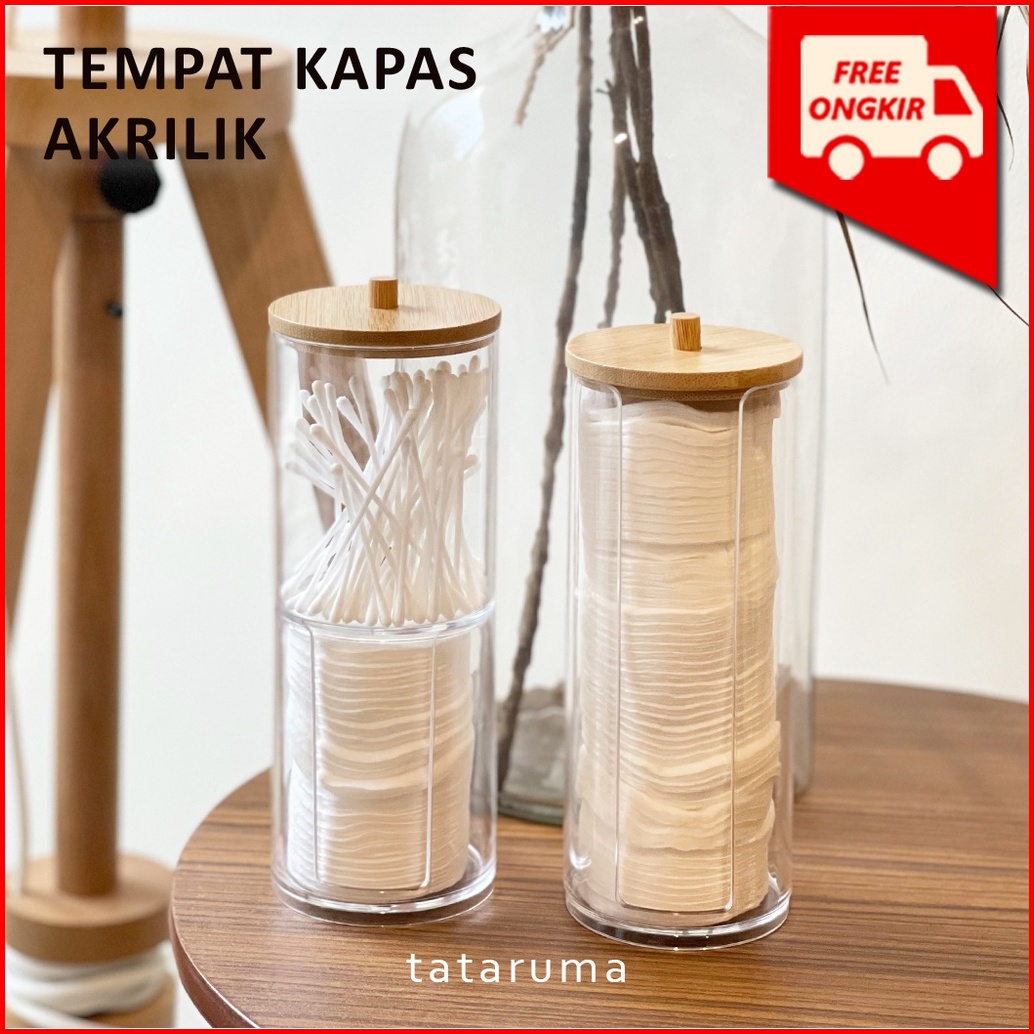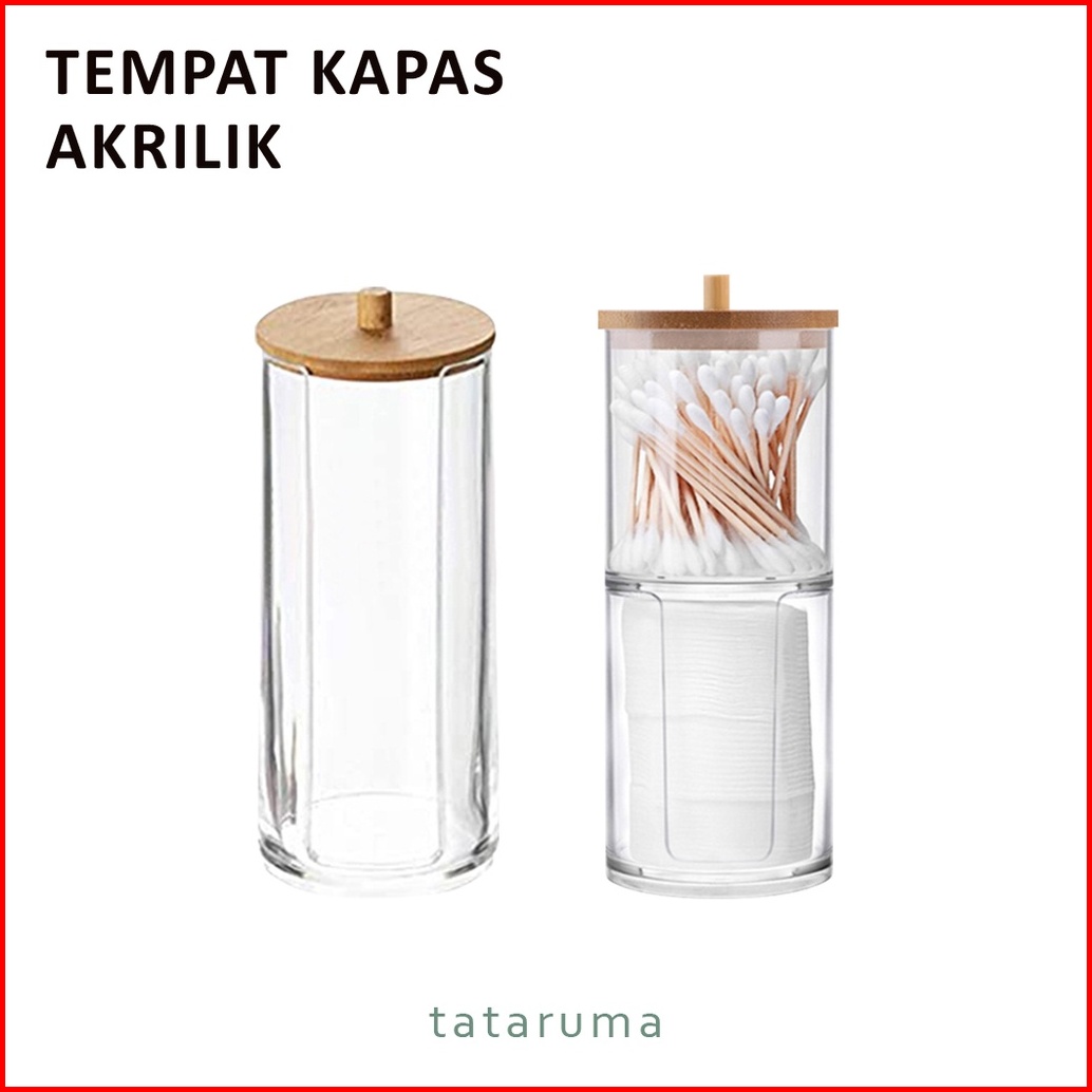 Tataruma Kirei - Tempat Kapas Cotton Bud Akrilik Transparan Bening Clear Tutup Bambu Organizer Kotak Penyimpanan Kapas A