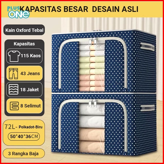 Plus One - Storage Box Besar Multifungsi 72 Liter - Tempat Penyimpanan Barang Pakaian Baju Celana Mainan Lipat 72l 72 Lt
