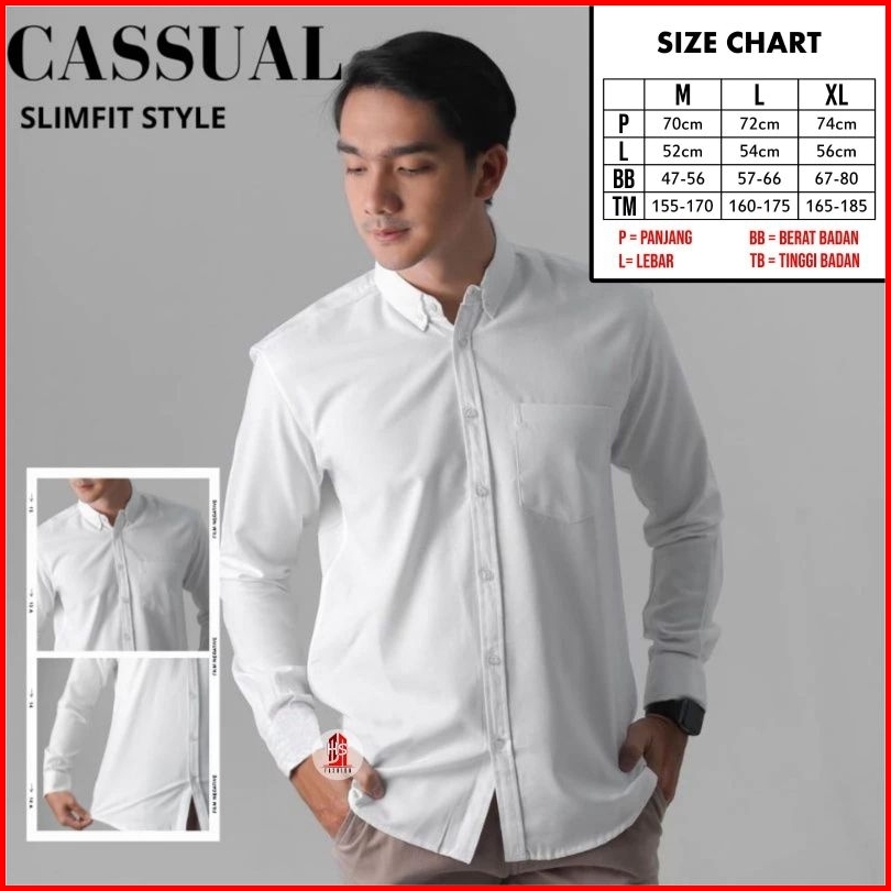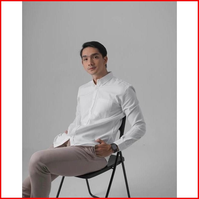 Kemeja Cowok Polos Lengan Panjang Slimfit Hem Pria Kantor Hitam Navy Putih