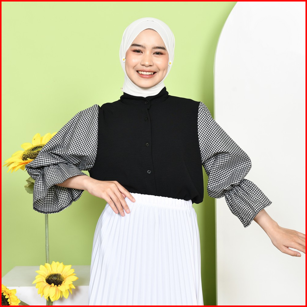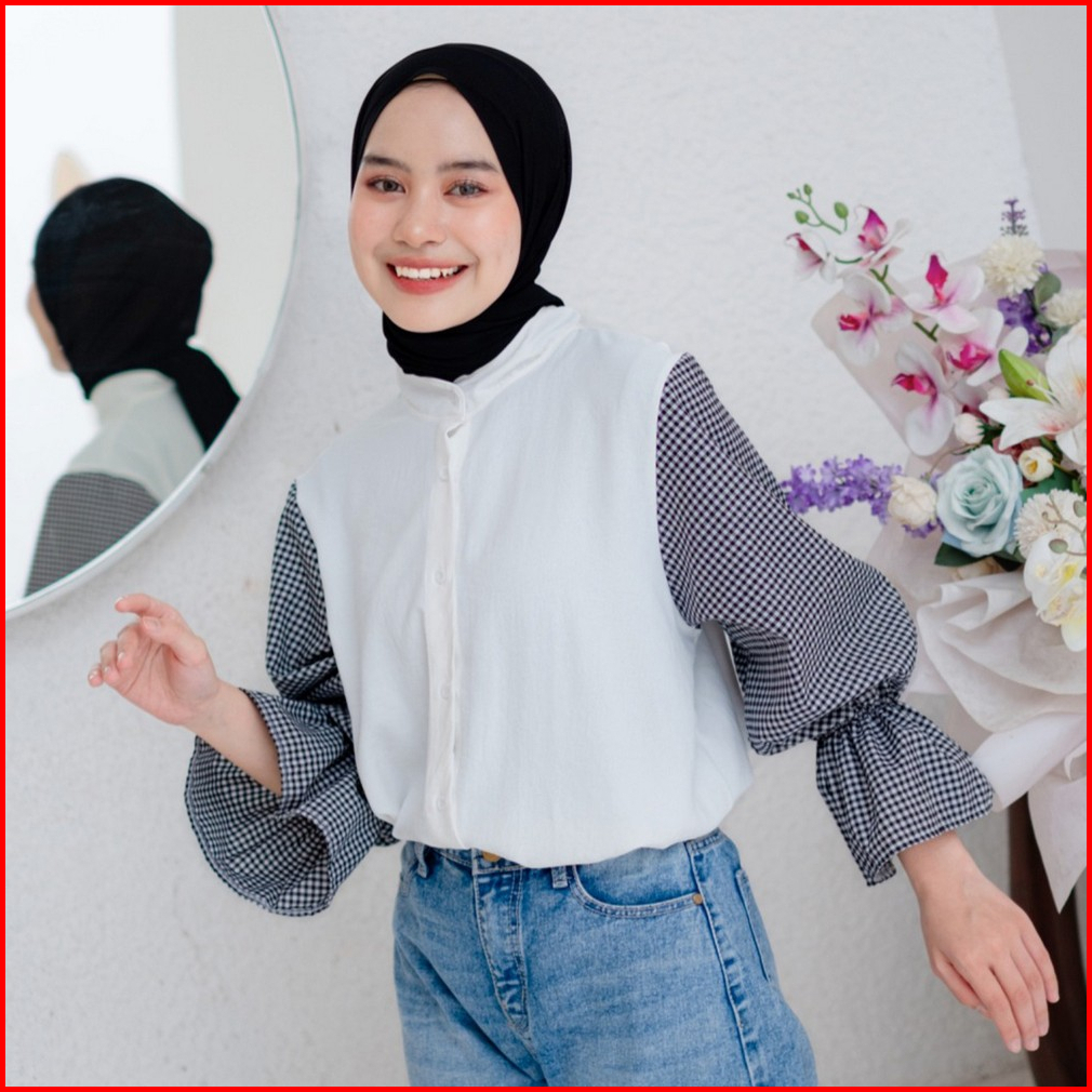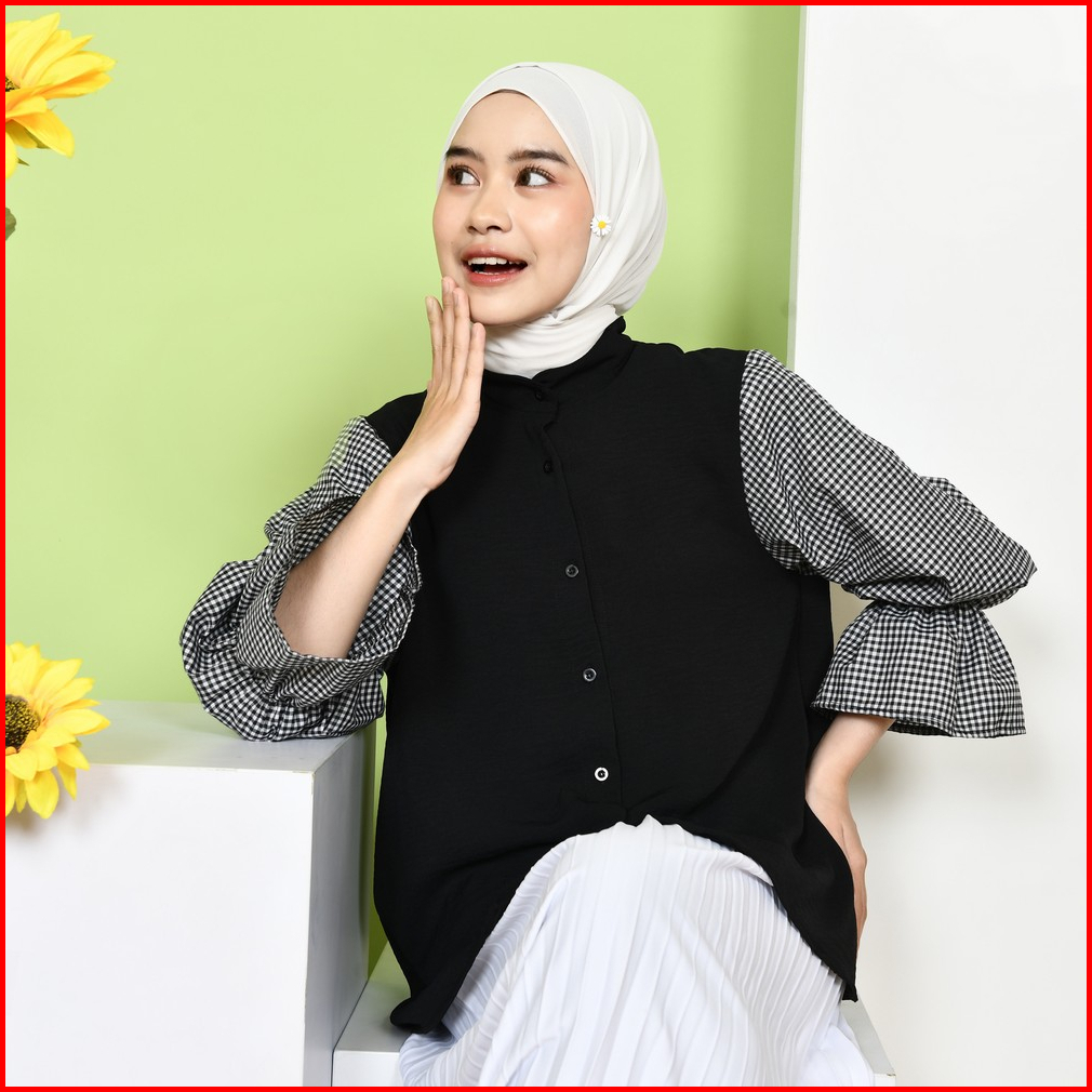 Mybamus Deya Mix Square Shirt Kemeja Wanita Atasan Tangan Panjang