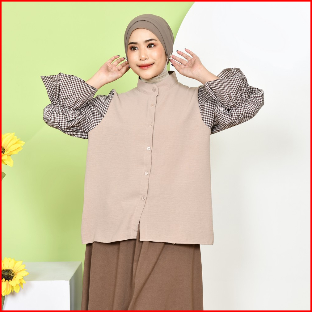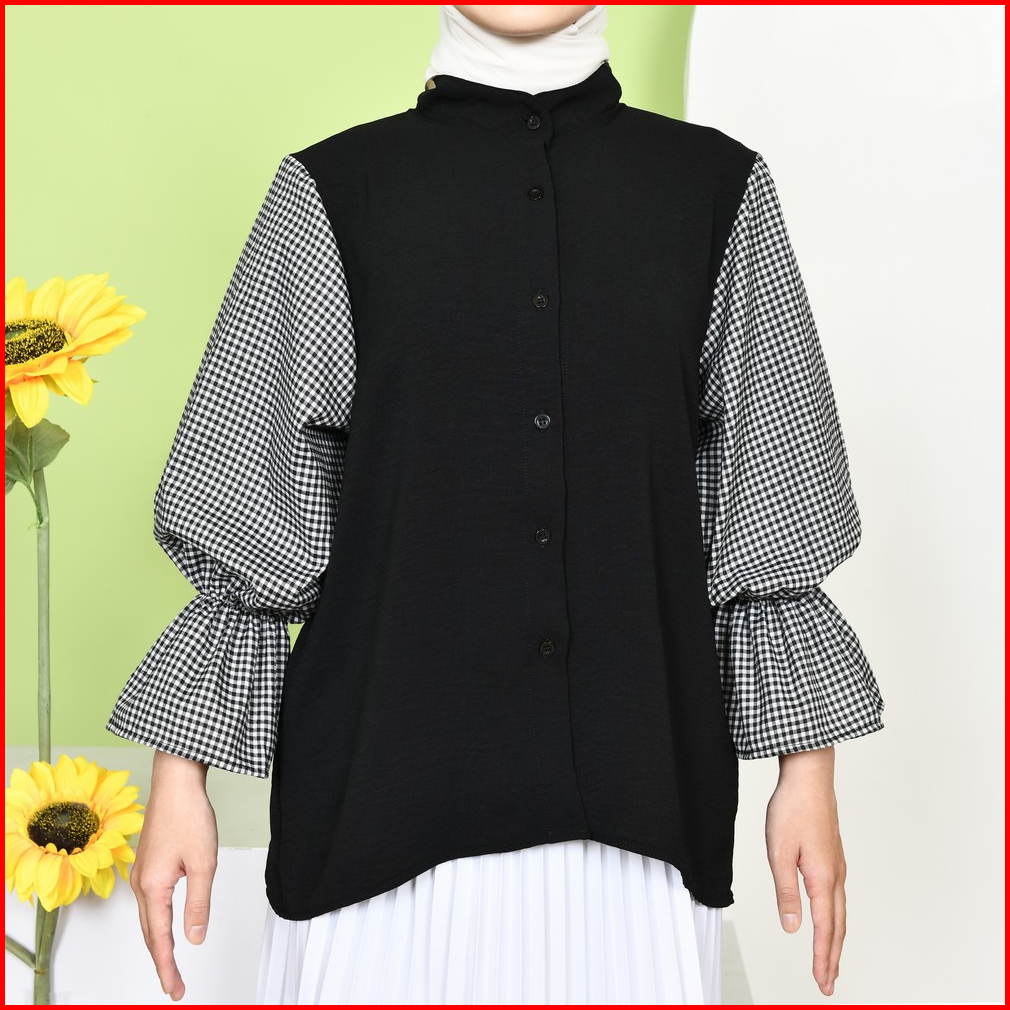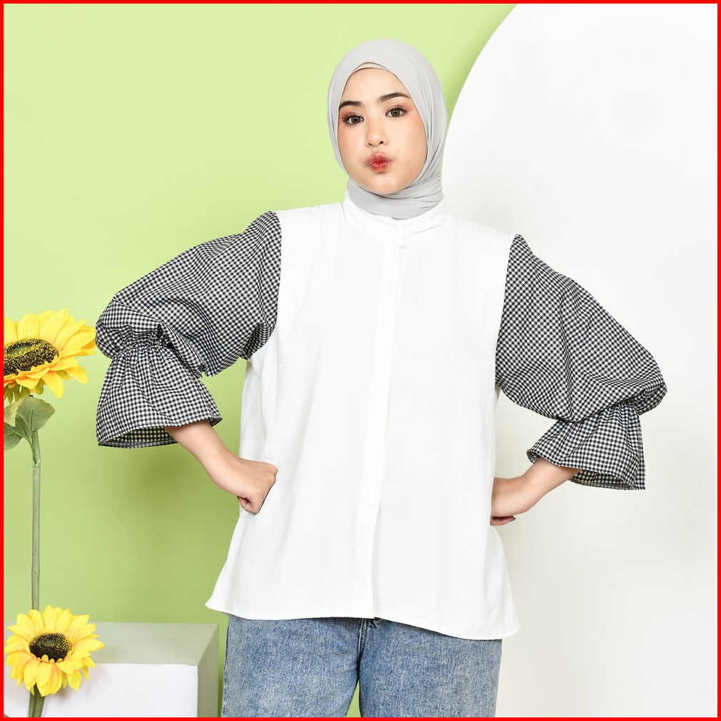 Mybamus Deya Mix Square Shirt Kemeja Wanita Atasan Tangan Panjang