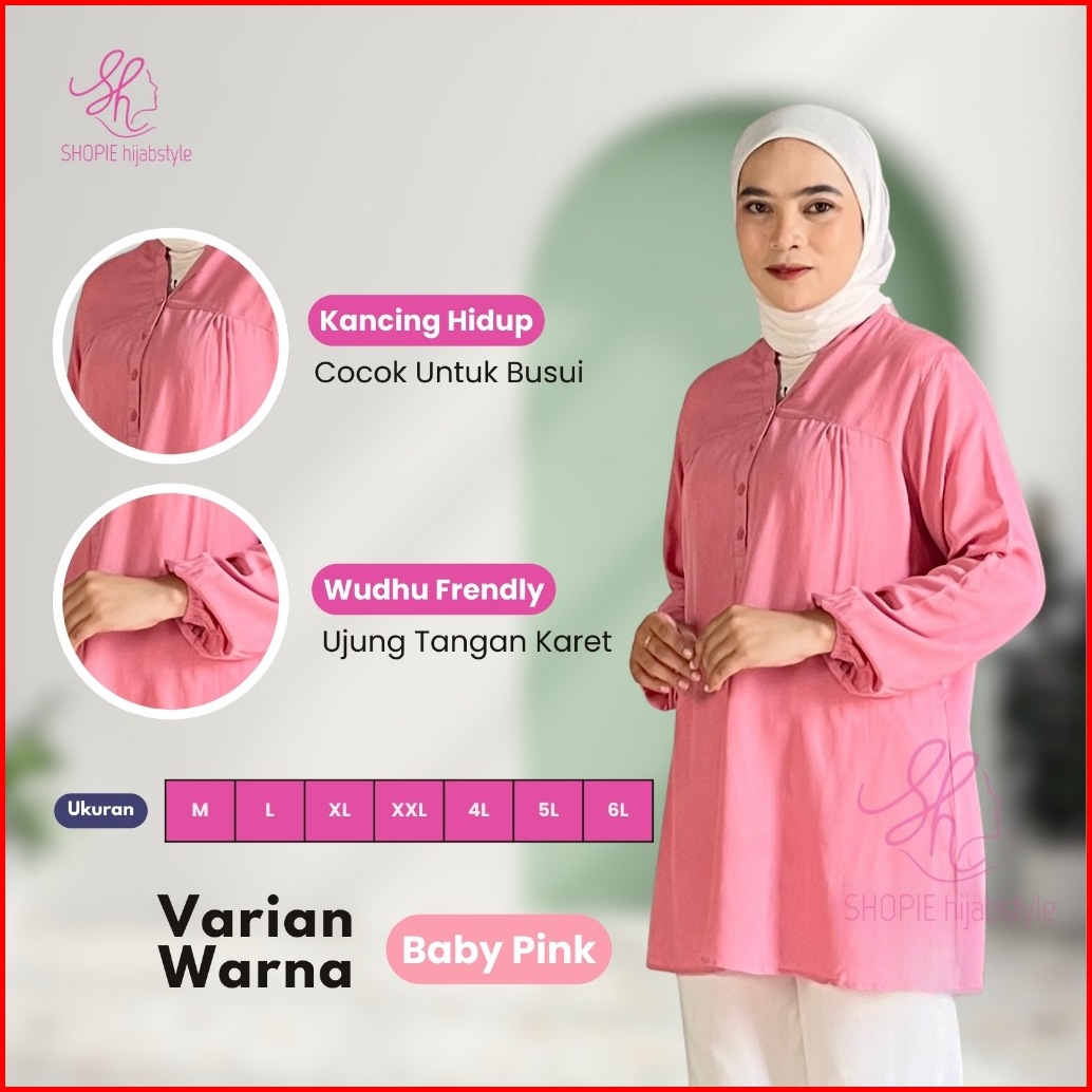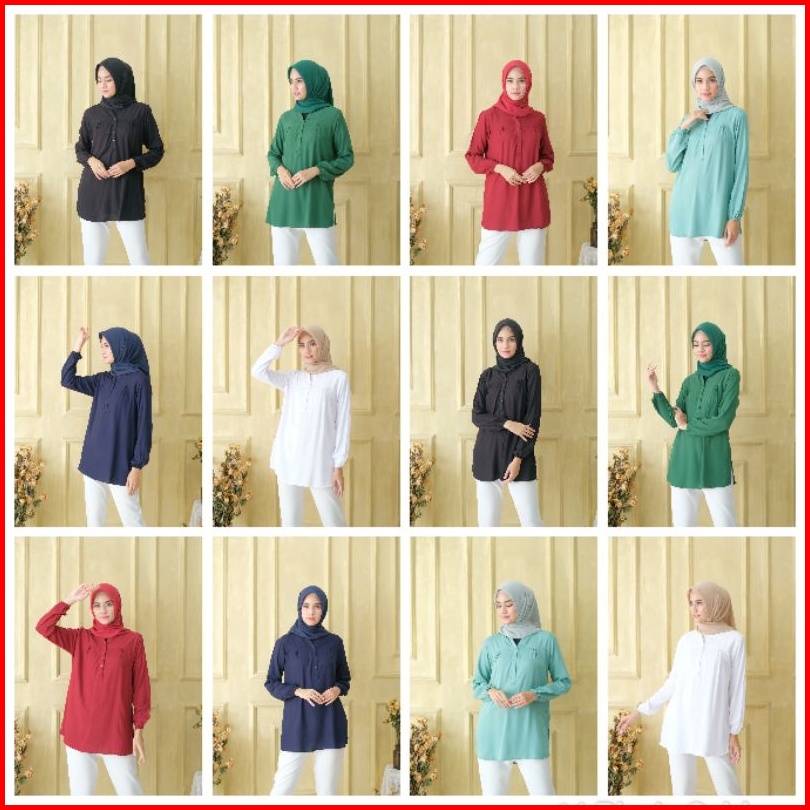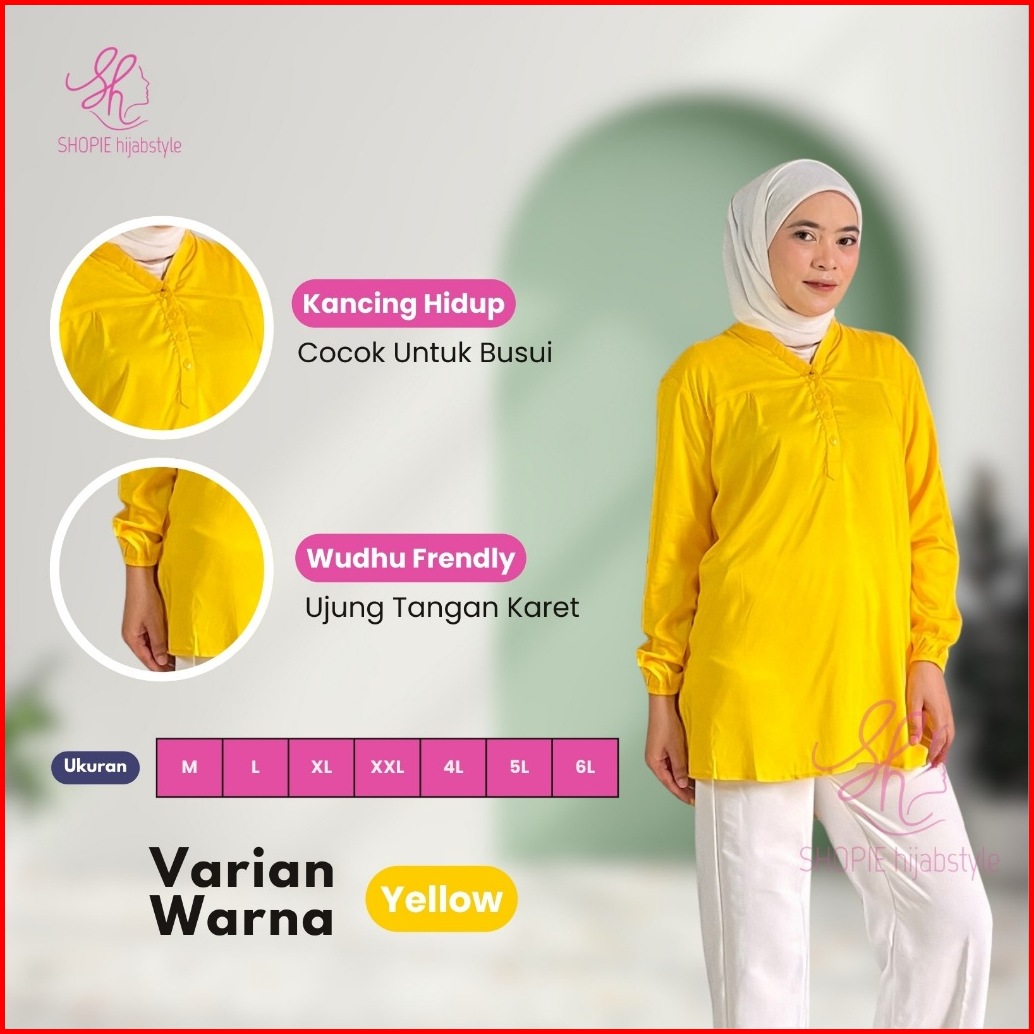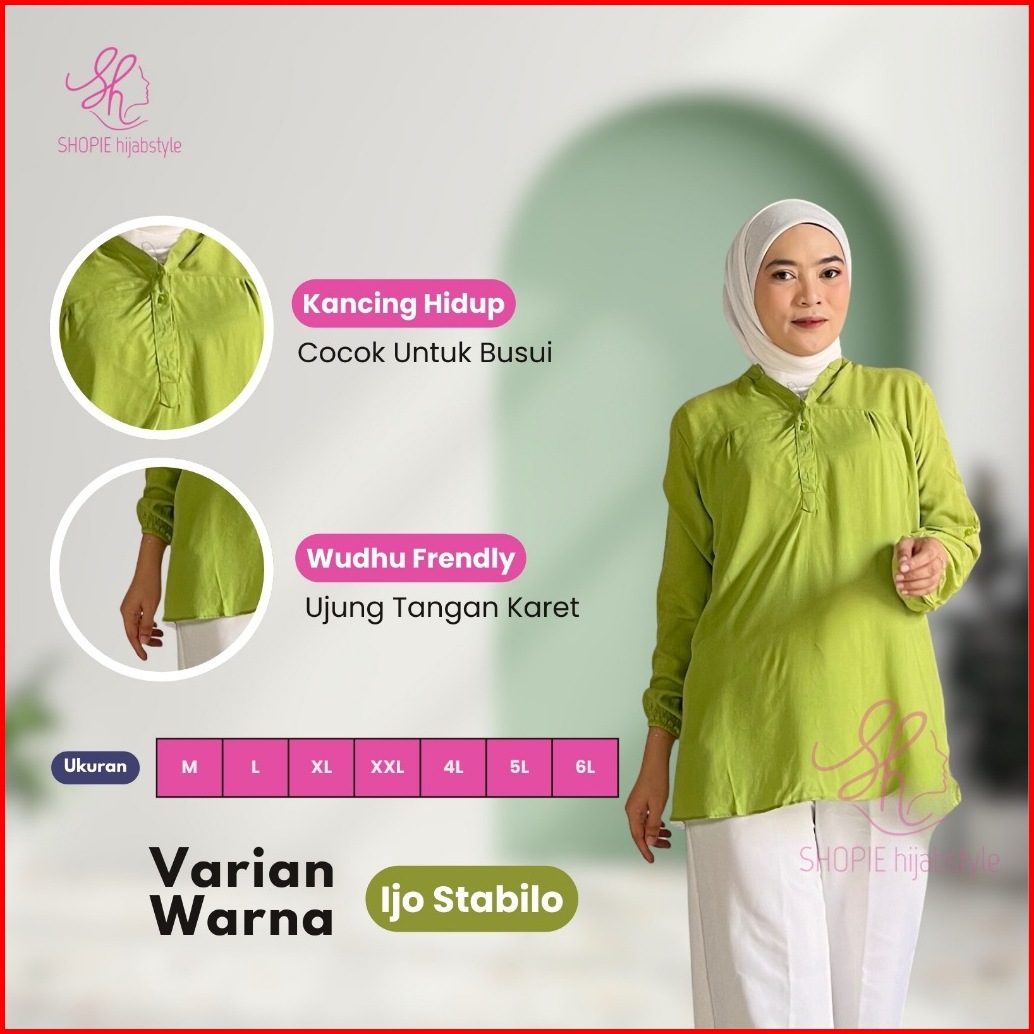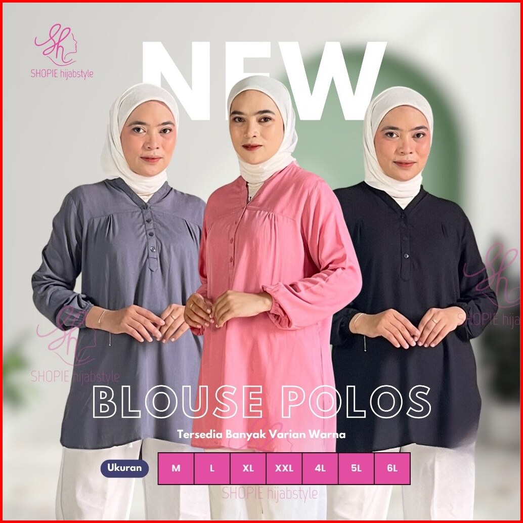 Blus Polos Rayon Kekinian Buat Wanita Kerja Mahasiswi Kuliah Lengan Karet Wudhu Friendly Bahan Adem