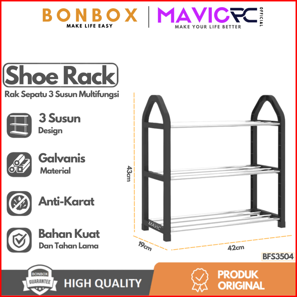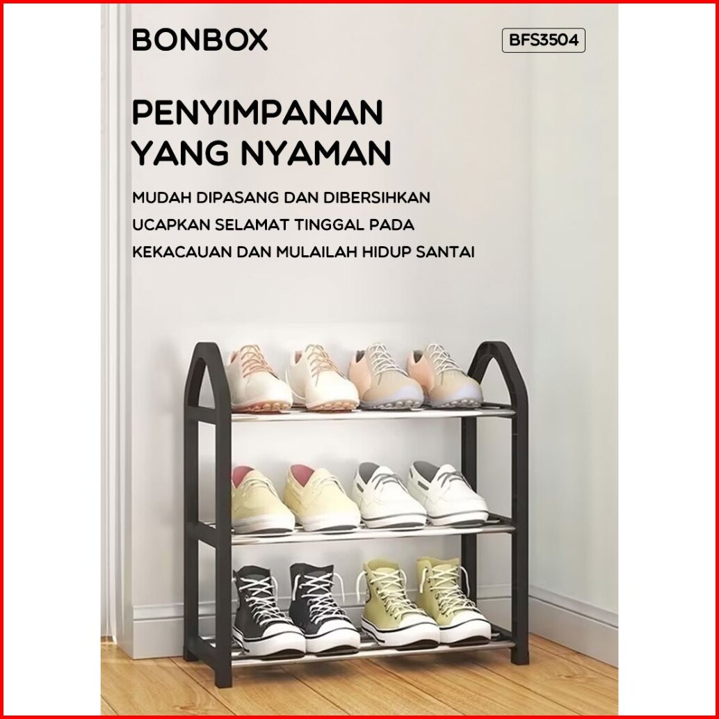 Bonbox Bfs3504 Rak Sepatu Sendal 3 Susun Tingkatan Multifungsi Shoe Rack Floating Serbaguna
