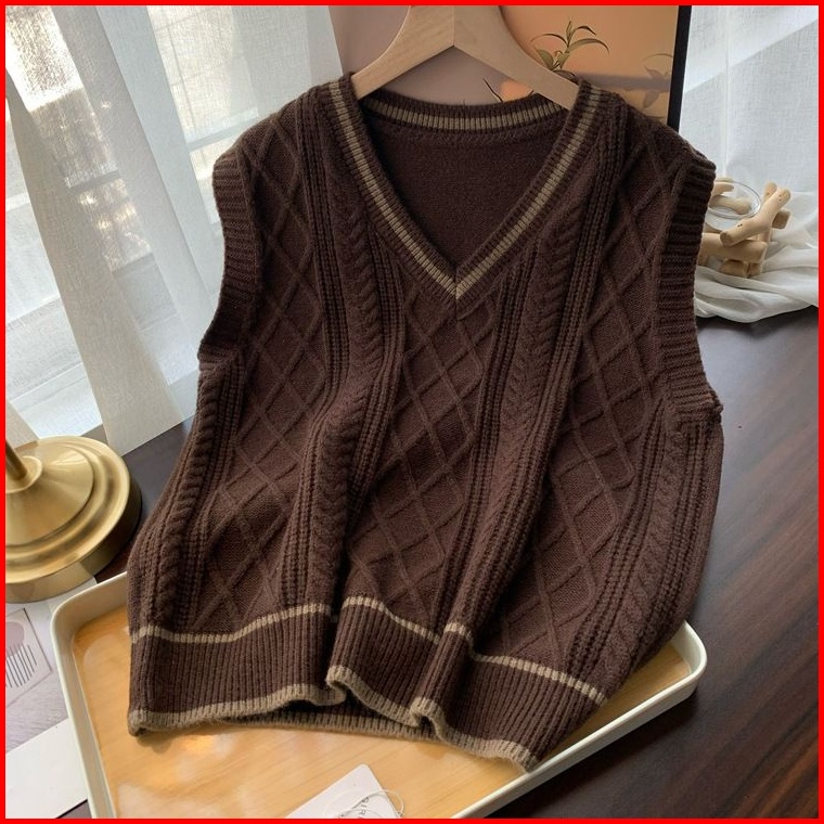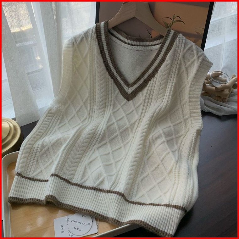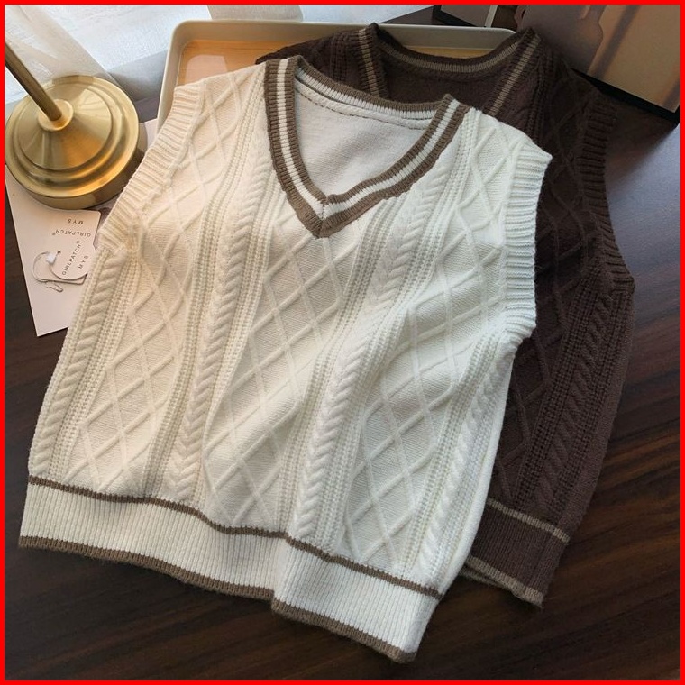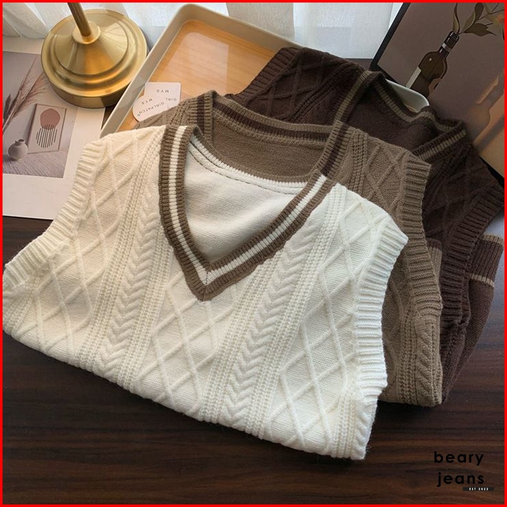 Beary Jeans Bj064 Prism Style Korean Vest Rompi Rajut Polos Wanita Premium Import