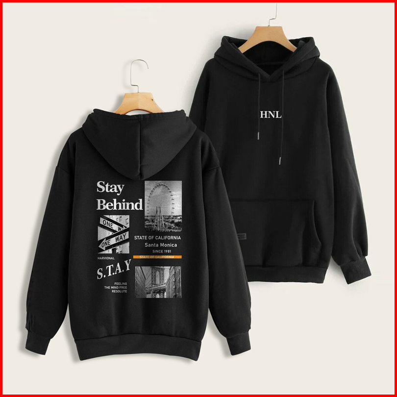 Harvional Hoodie Jemper Stay Behind Size S - Xxl Pria Wanita
