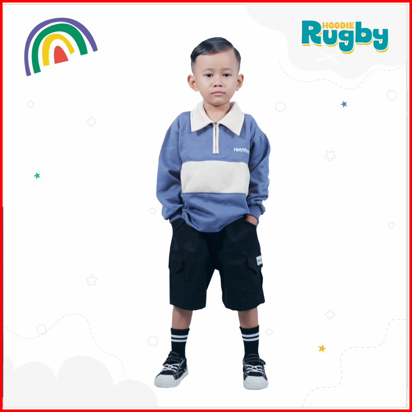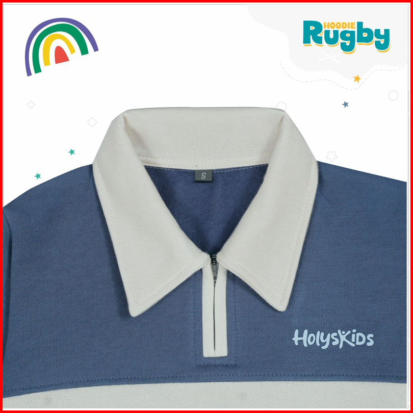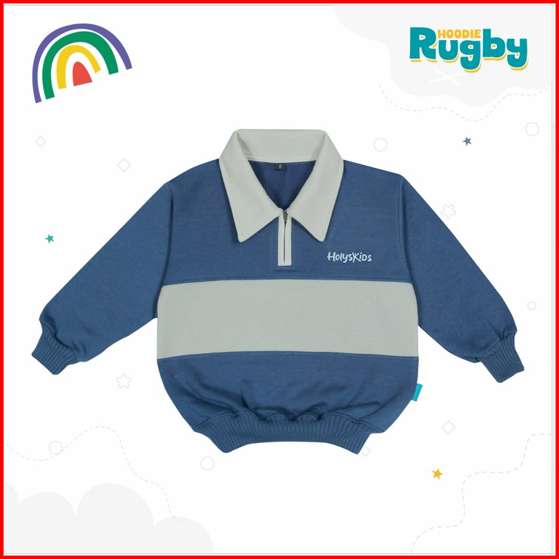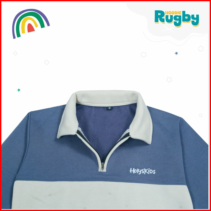Hoodie Rugby Anak Denim Fleece Resleting Depan