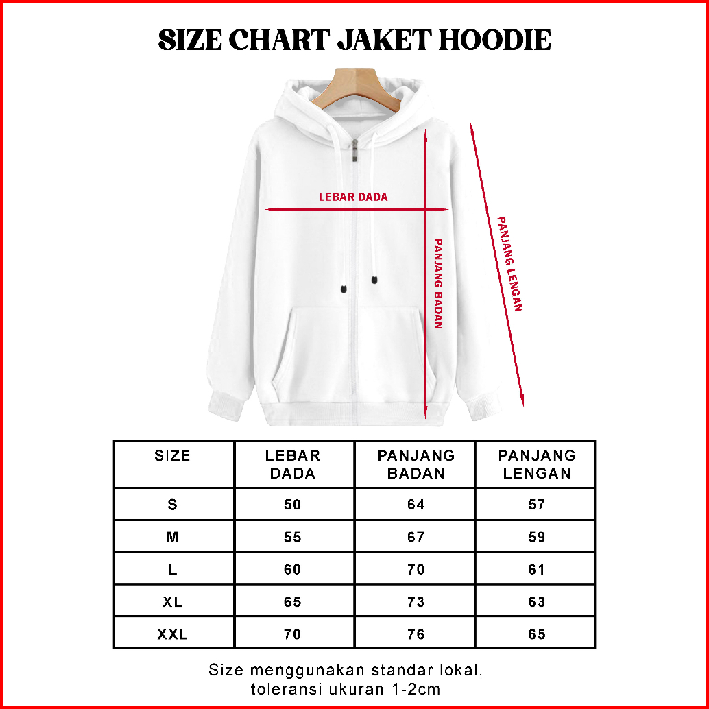 S (LD 100 CM), M (LD 110 CM), L (LD 120 CM), XL (LD 130 CM), XXL (LD 140 CM)