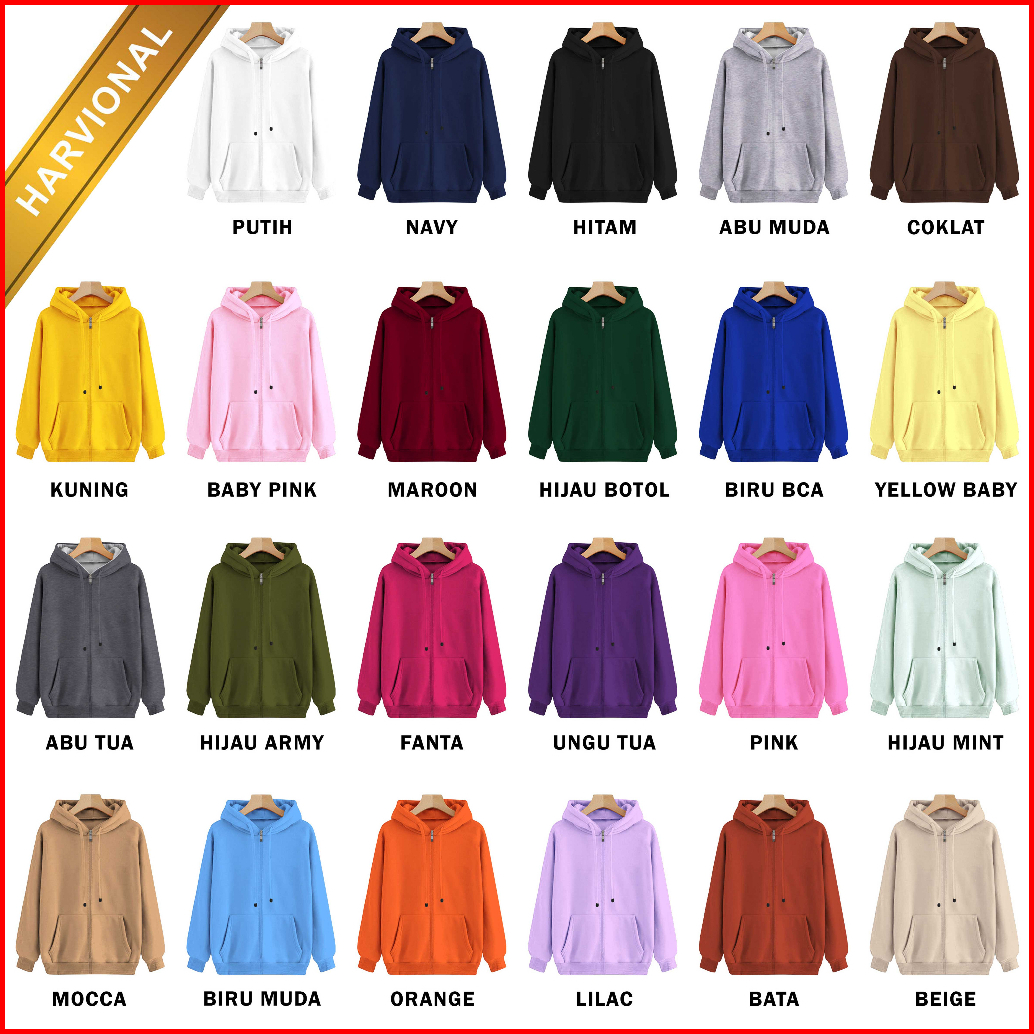 Harvional Hoodie Zipper Doggie Size S - Xxl Pria Wanita