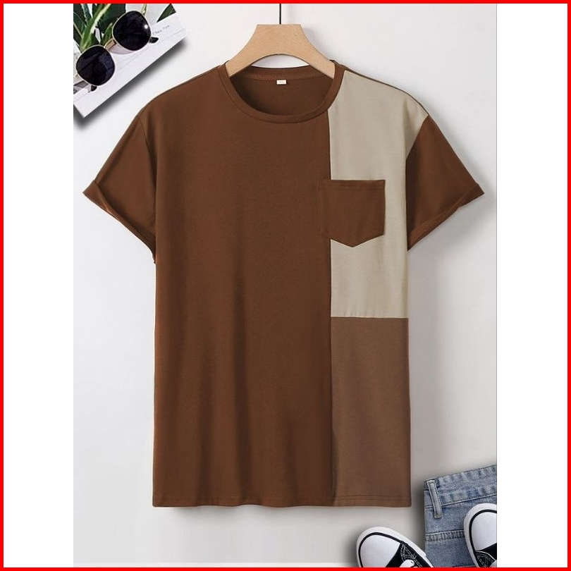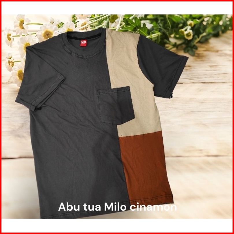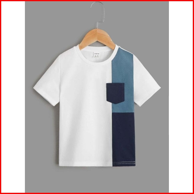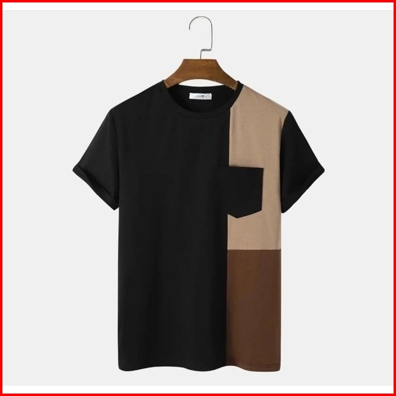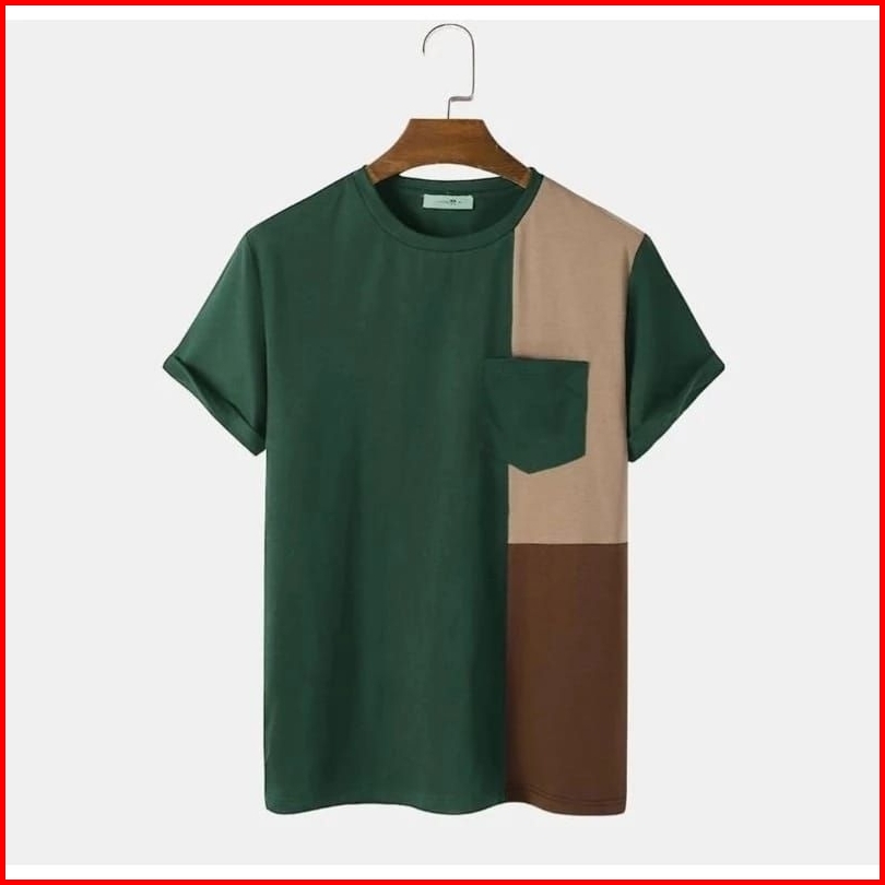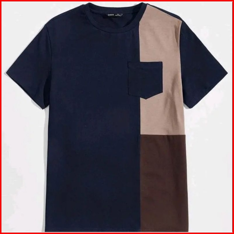 Kaos Kombinasi Vertikal 3 Warna Pocket Segitiga