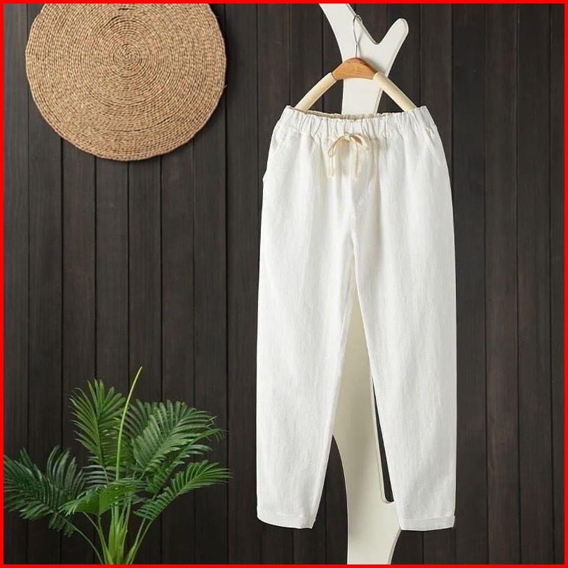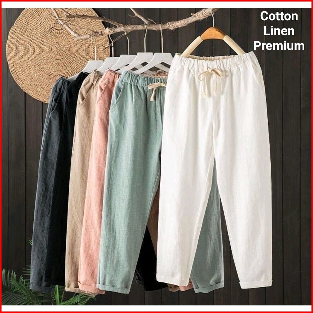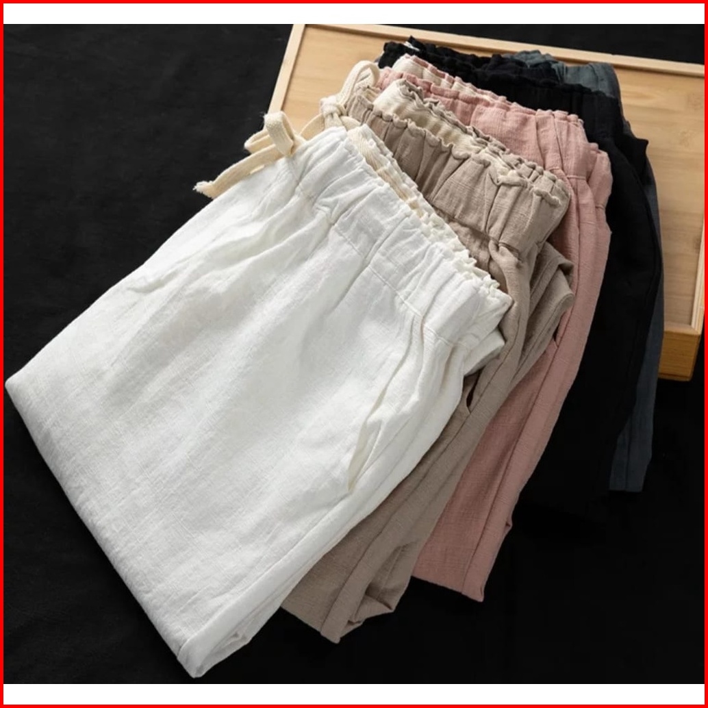 Celana Wanita Linen Pants Celana Kekinian Baggy Pants Wanita Terlaris - Celana Kulot Pinggang Karet