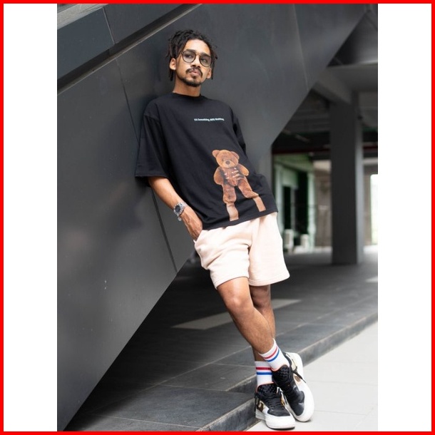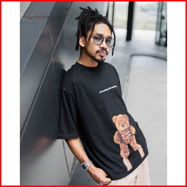 Ootdsupply Oversized Tshirt Teddy Bear Black L Kaos Oversized Pria Dan Wanita Ov016