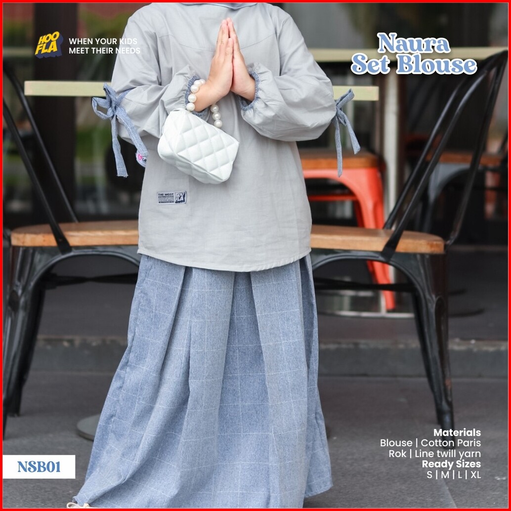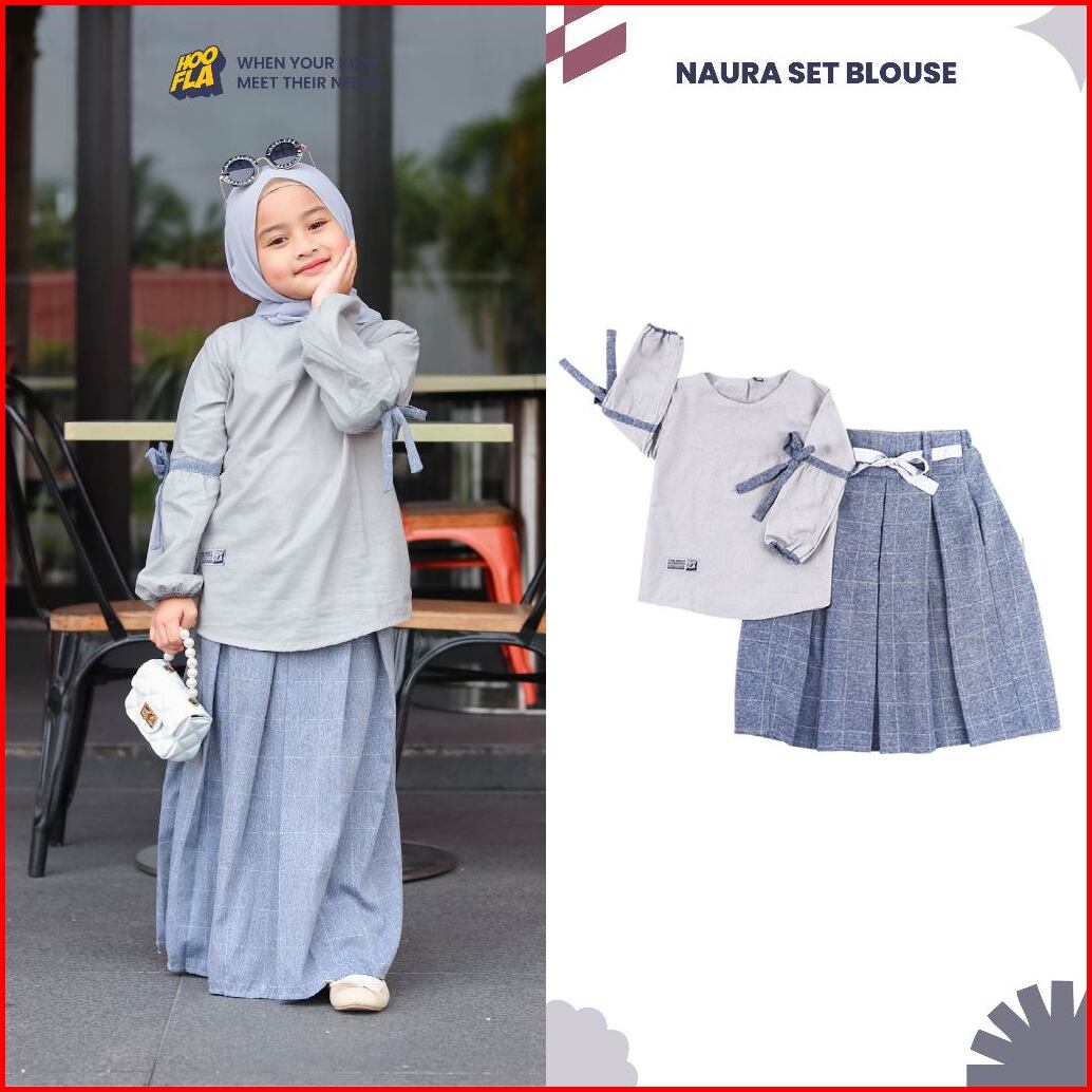 Hoofla Naura Blouse Celana Rok Anak Perempuan 3-12 Tahun Setelan Muslimah Abu Navy