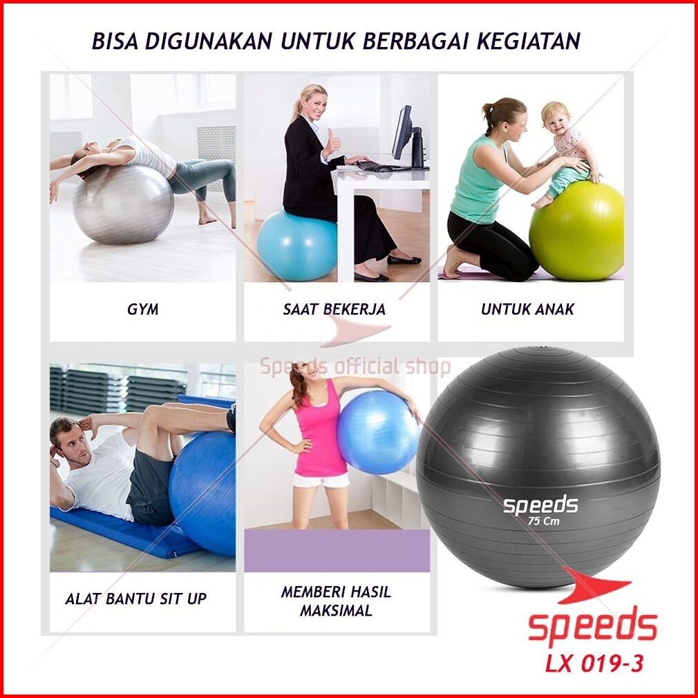 Speeds Gym Ball Fitness 75 Cm Bola Gym Bola Yoga Alat Olahraga Bonus Pompa Gymball 019-3