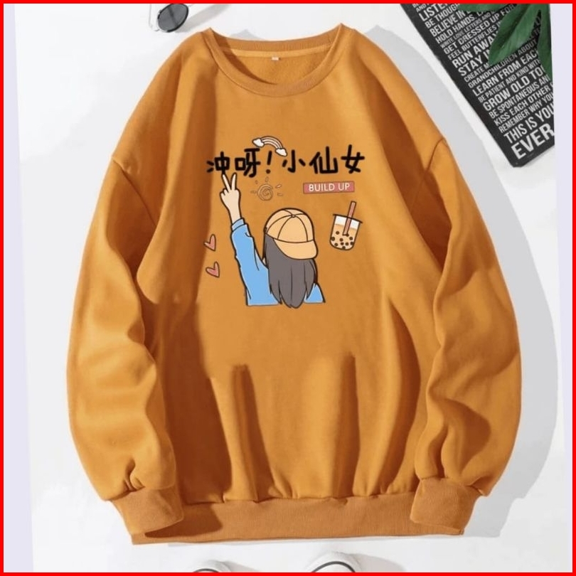 Jaket Sweater Anak Perempuan Bobba Build Up 5-15 Thn Hoodie Anak Perempuan 5-15thn Crewneck