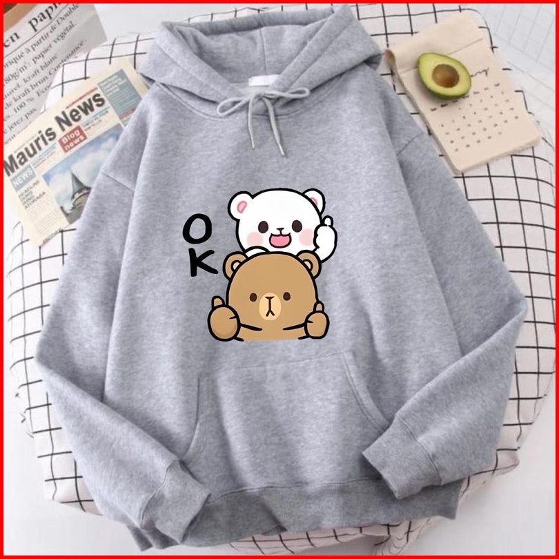 Sweater Hoodie Anak Perempuan Ok Panda Jaket Jumper Anak Bahan Lembut Sablon Digital Printing