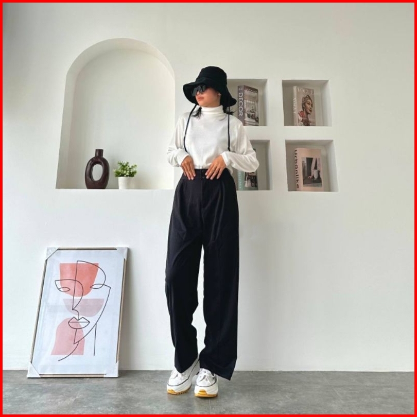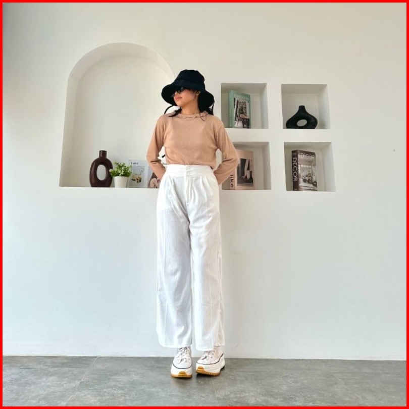 Celana Kulot Jennie Knit Pants Kancing 2 Resleting Loose Pants Wanita Highwaist