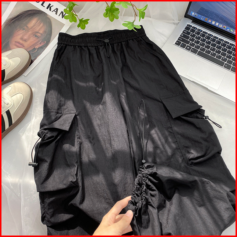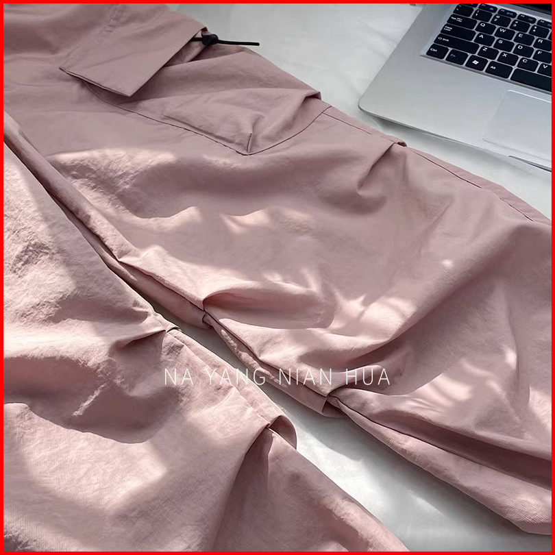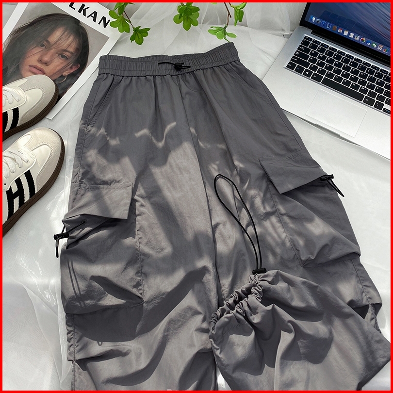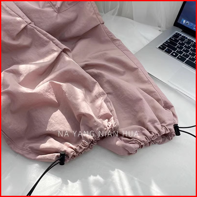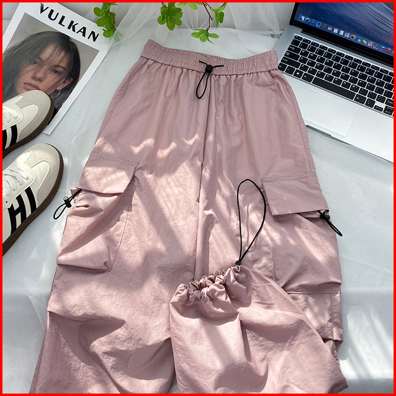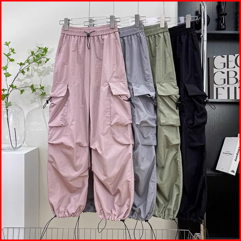 Pink Abu Abu Hitam Hijau Celana Cargo Panjang Wanita Highwaist Loose Korea
