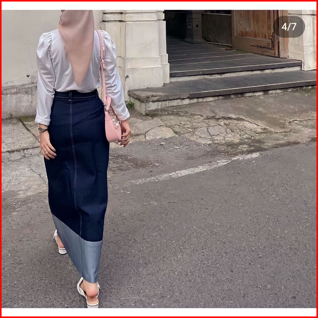 Rok Skrit Two Tone Jeans Highwaist Wanita Streach