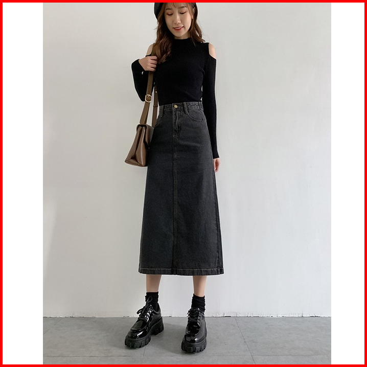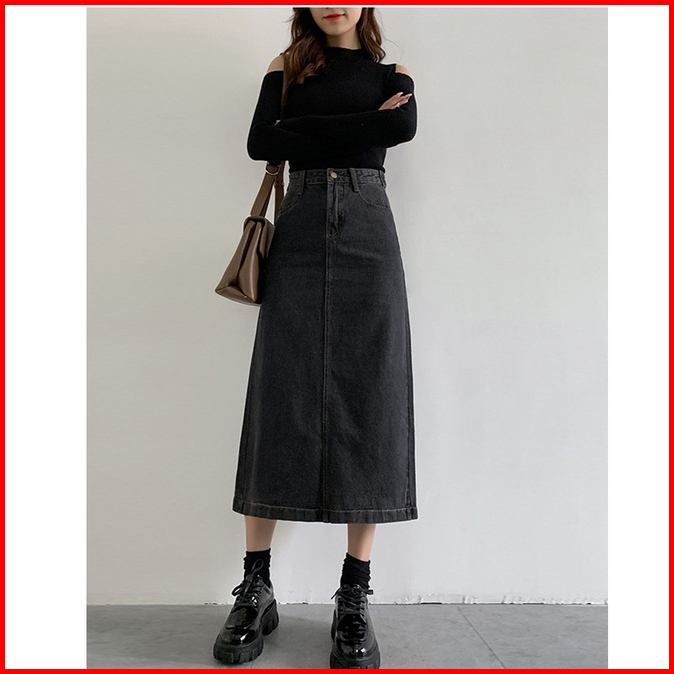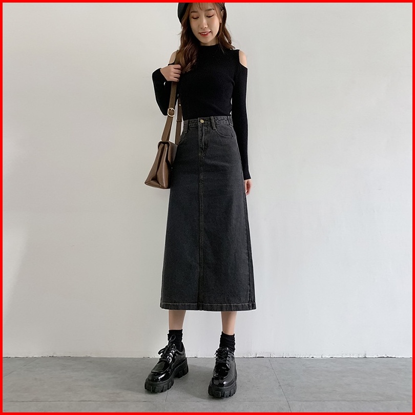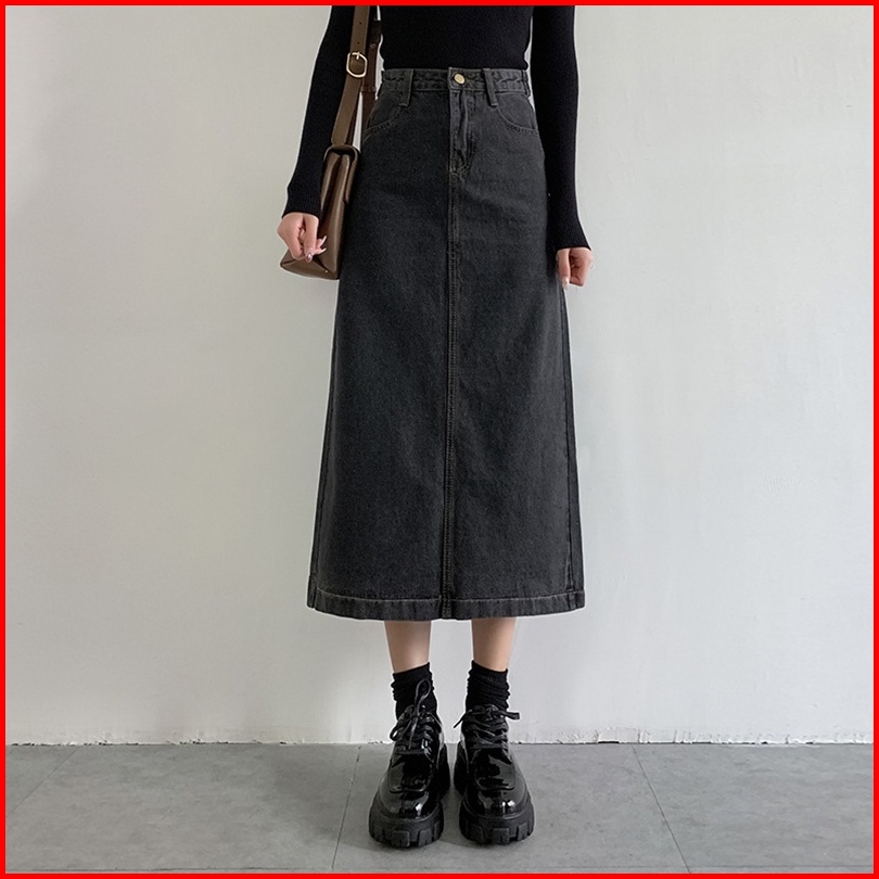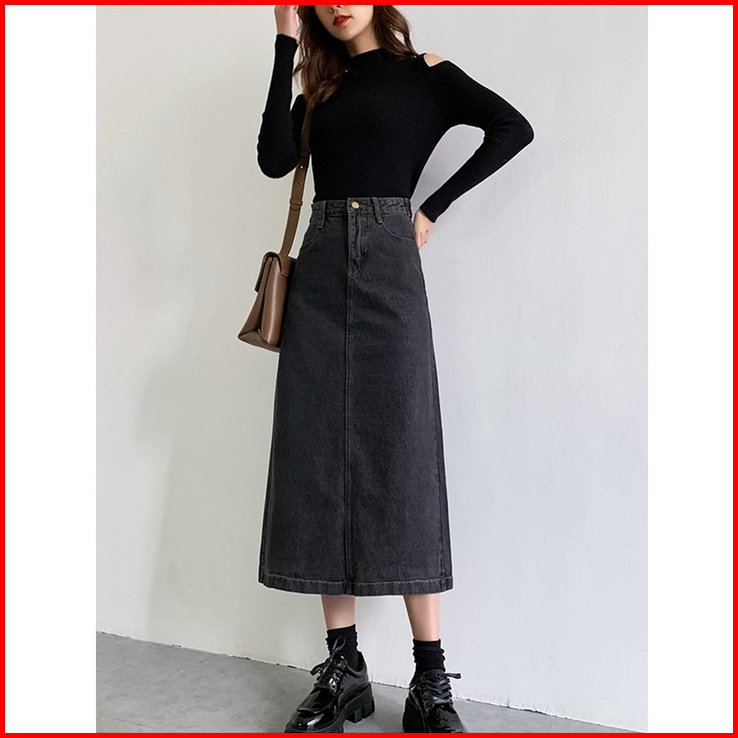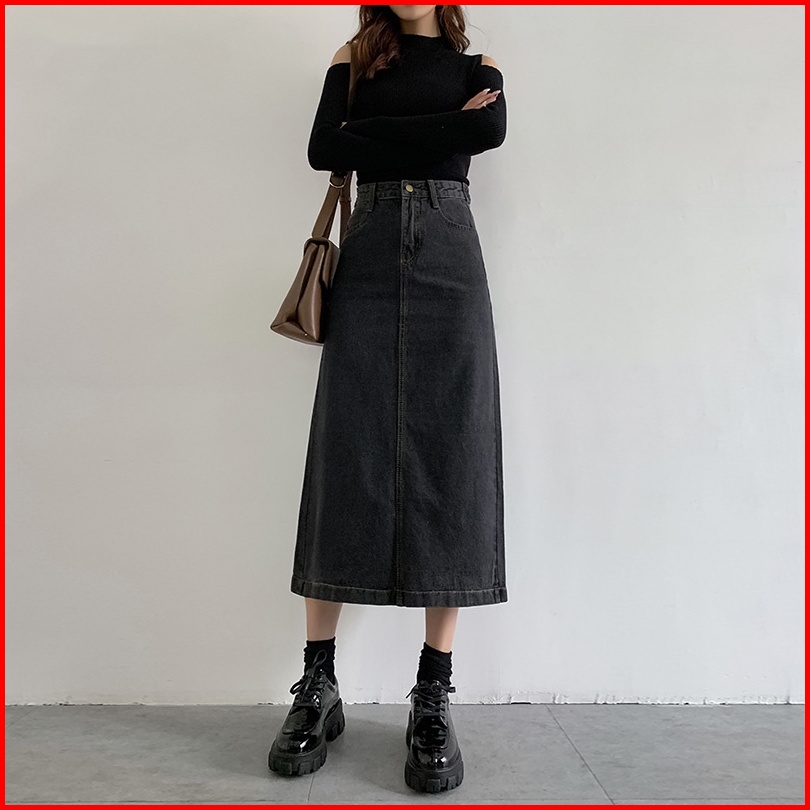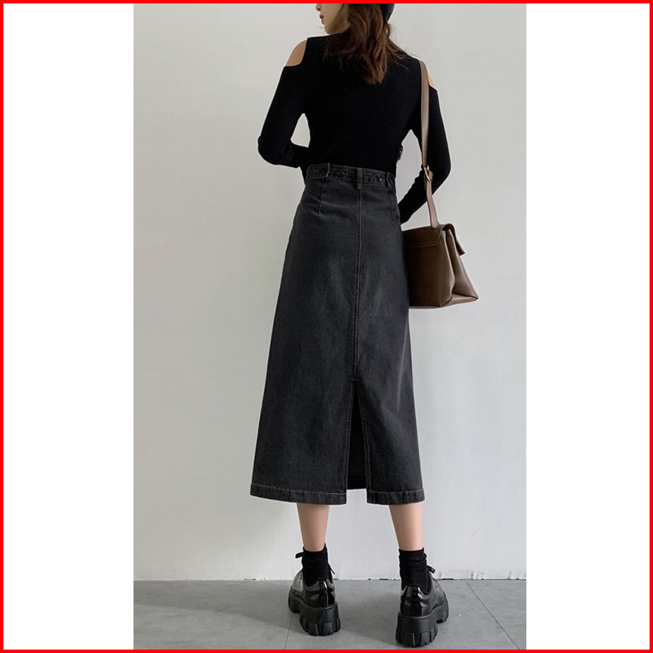 Alice Rok-highwaist Rok Jeans Wanita Kekinian Fashion Split Denim Rok