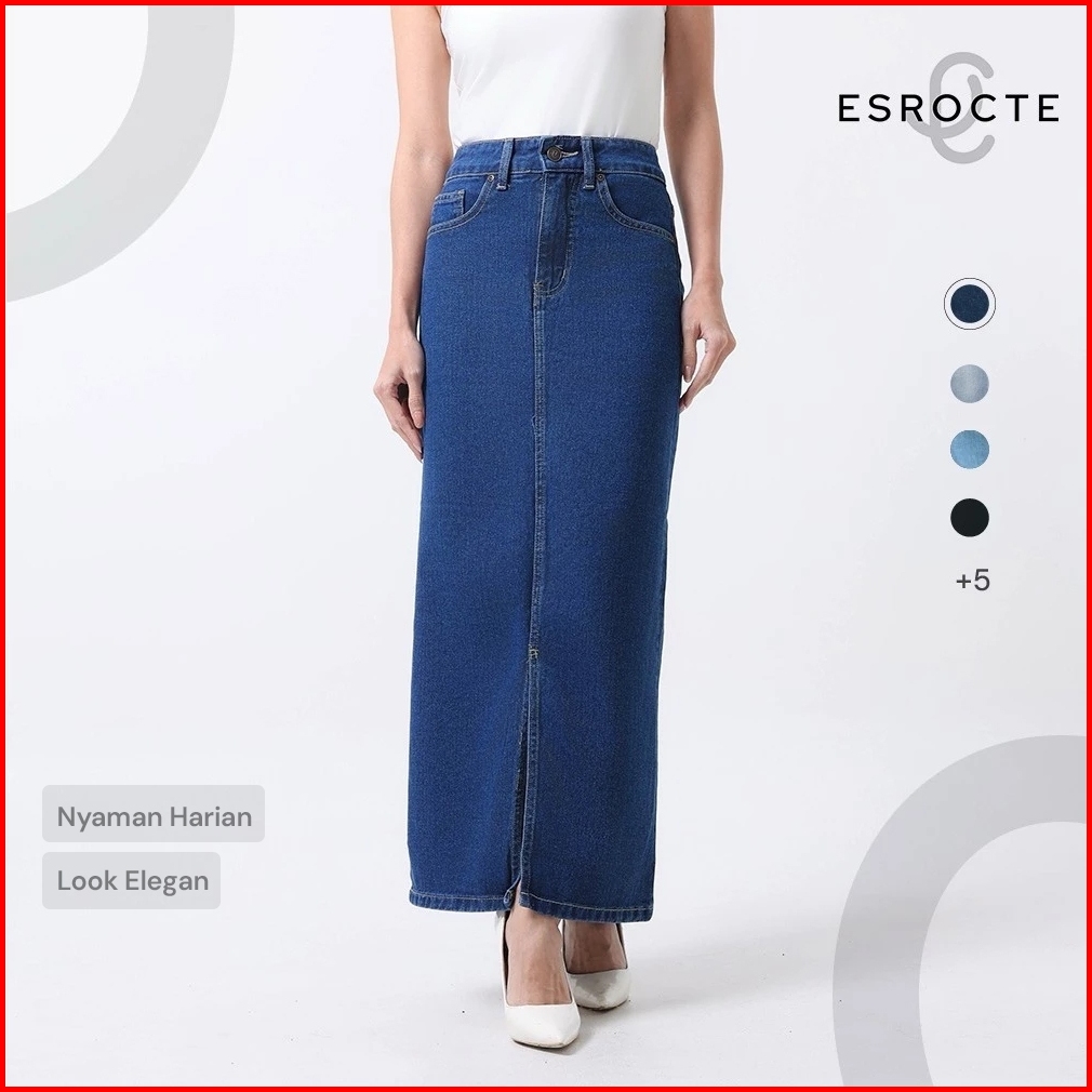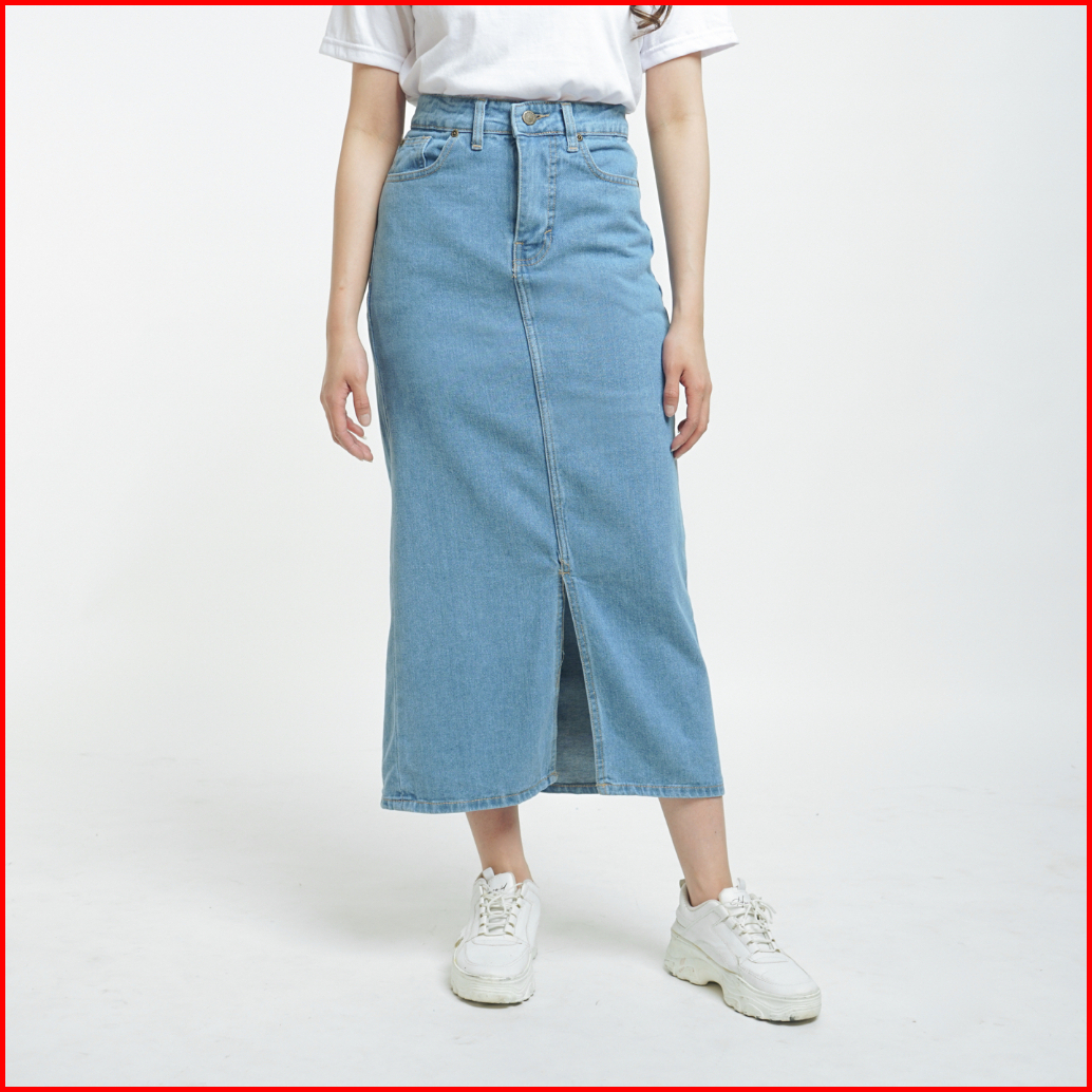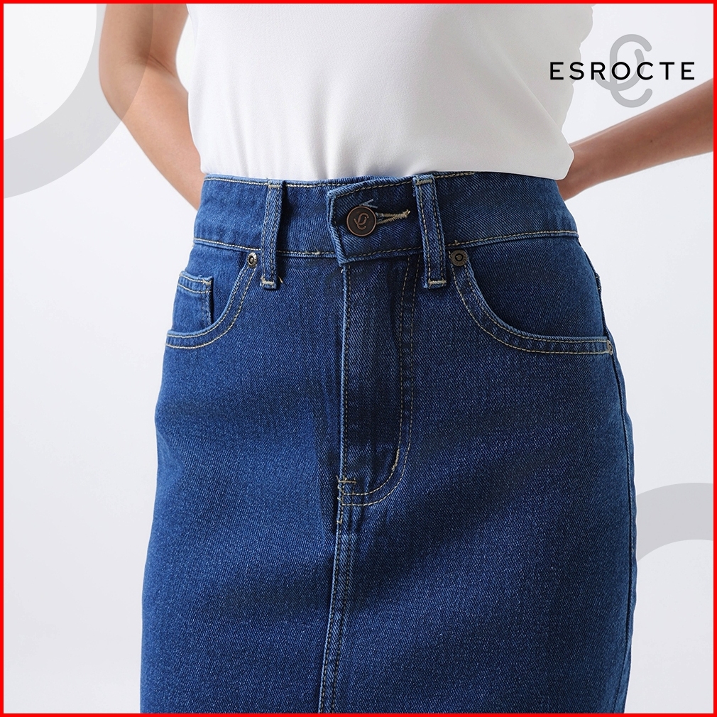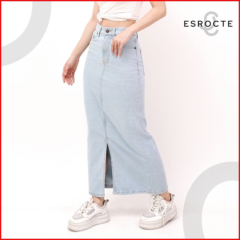 Esrocte Keira Skirt Rok Span Jeans Belah Depan High-waist Wanita 001 26-38