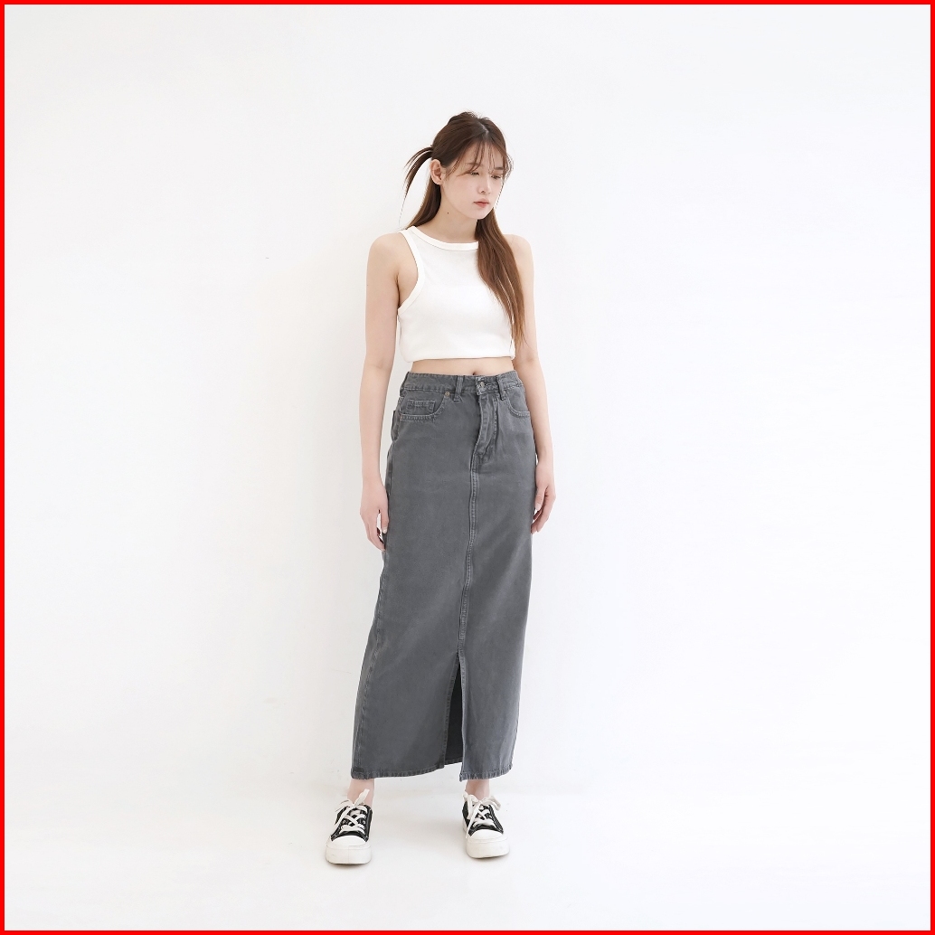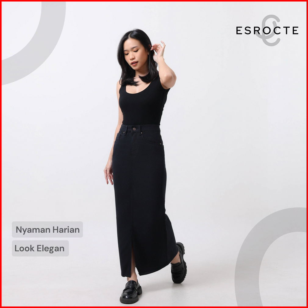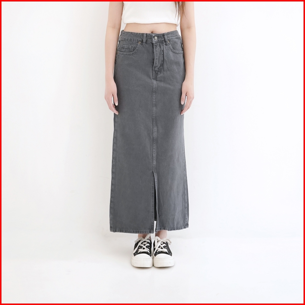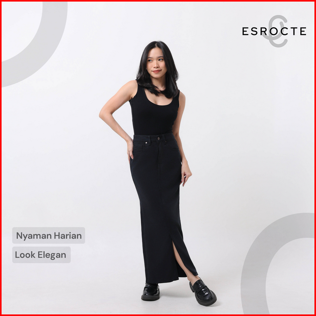 Esrocte Keira Skirt Rok Span Jeans Belah Depan High-waist Wanita 001 26-38