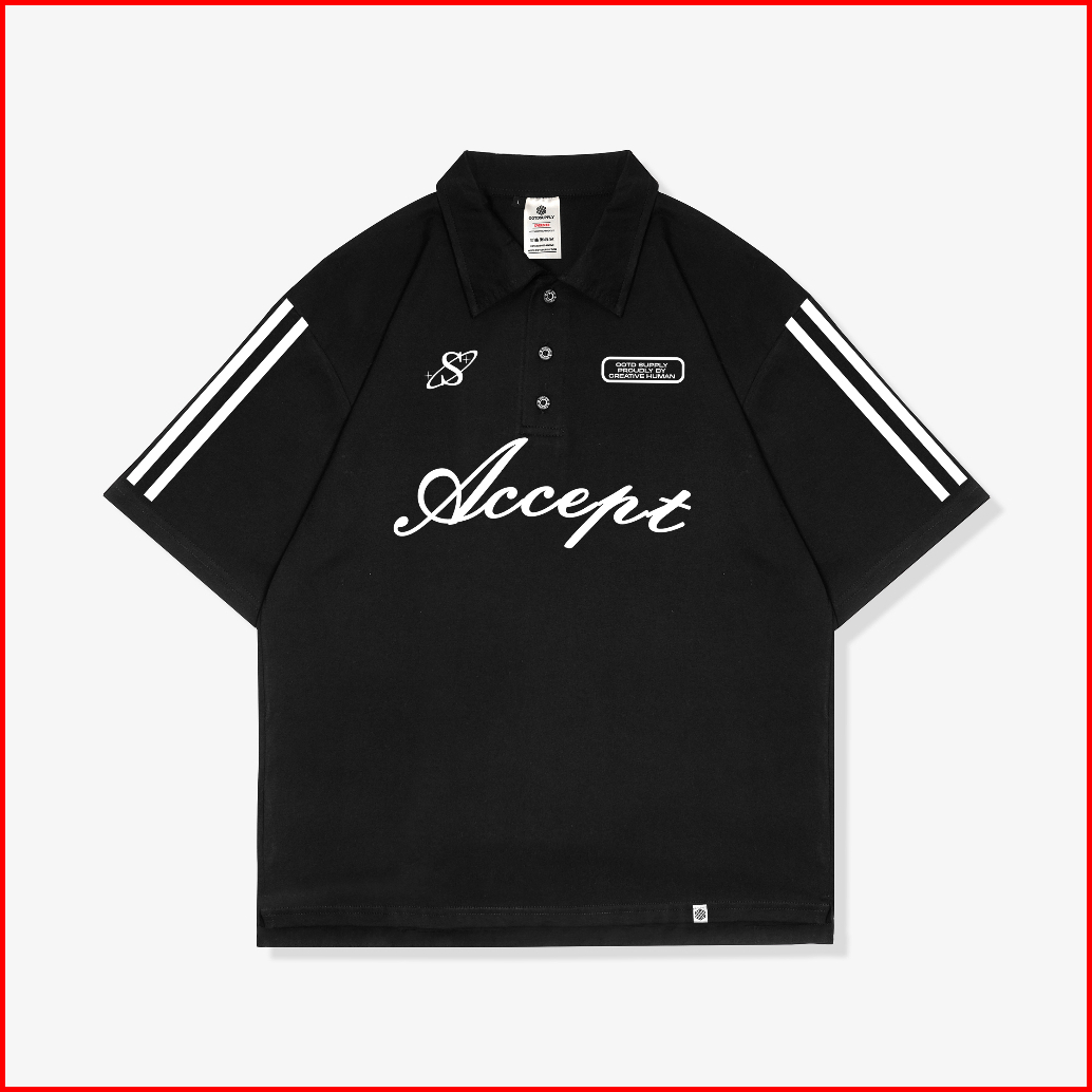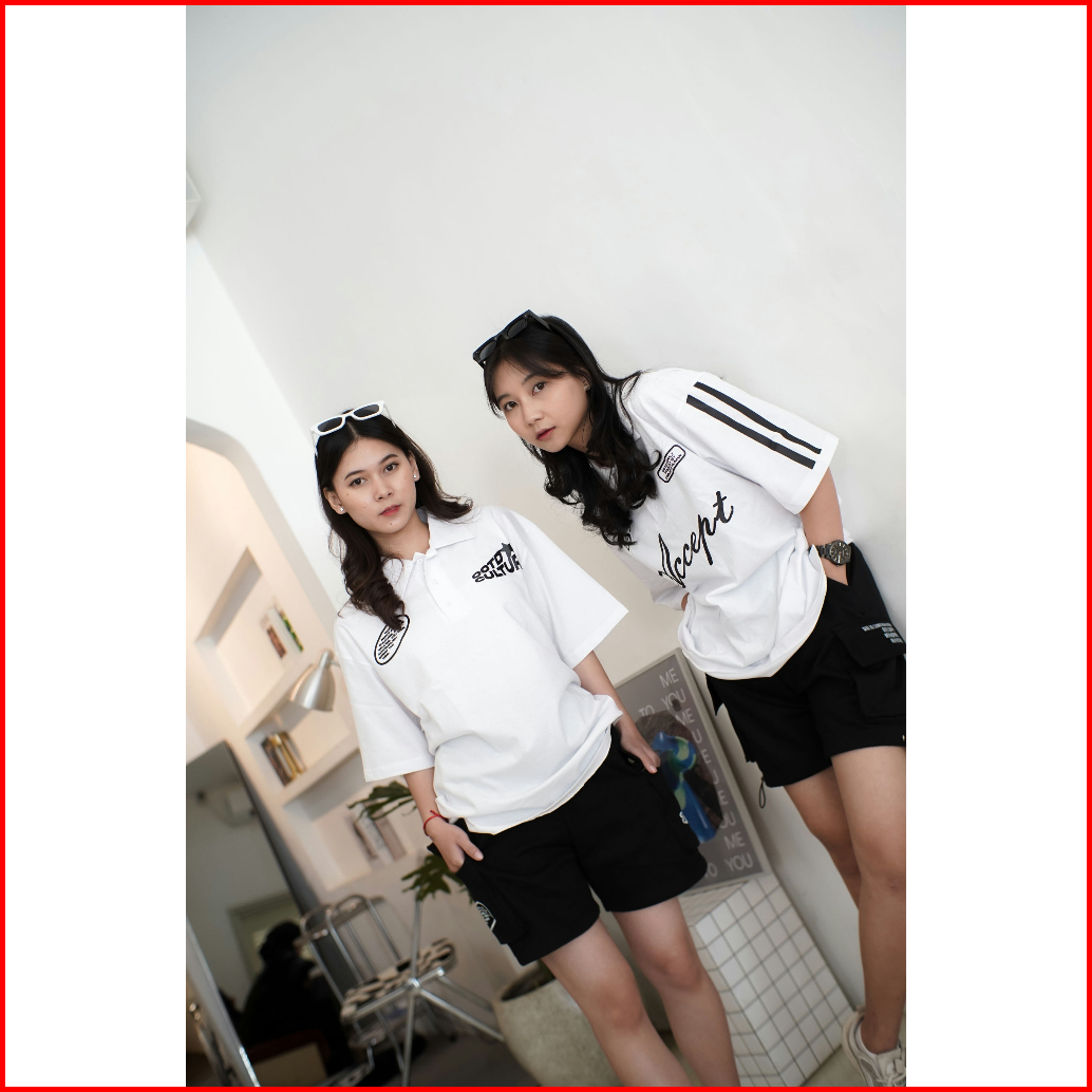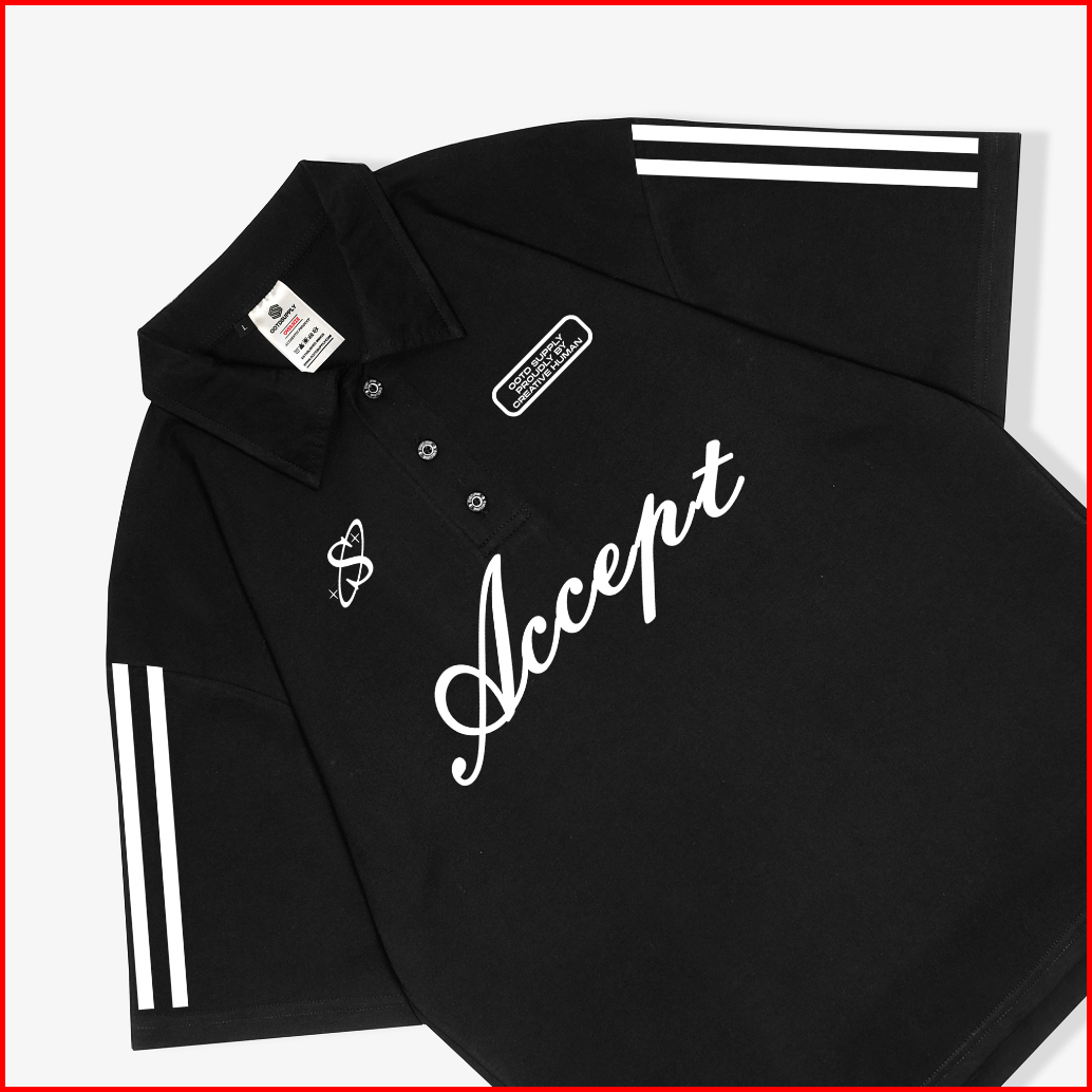 Ootdsupply Oversize Polo Shirt Accept Line White Black L Kaos Oversize Pria Dan Wanita Ovz-ps003
