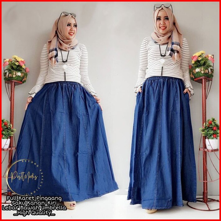 Rok Panjang Jeans Wanita Pecah Jessy Dan Rok Klok Flare Skirt Lebar Kekinian Terbaru Premium Murah