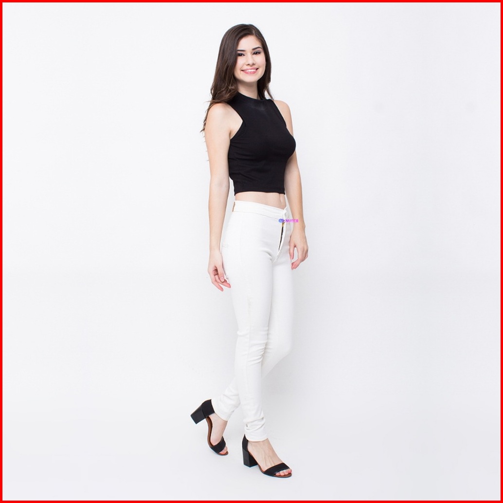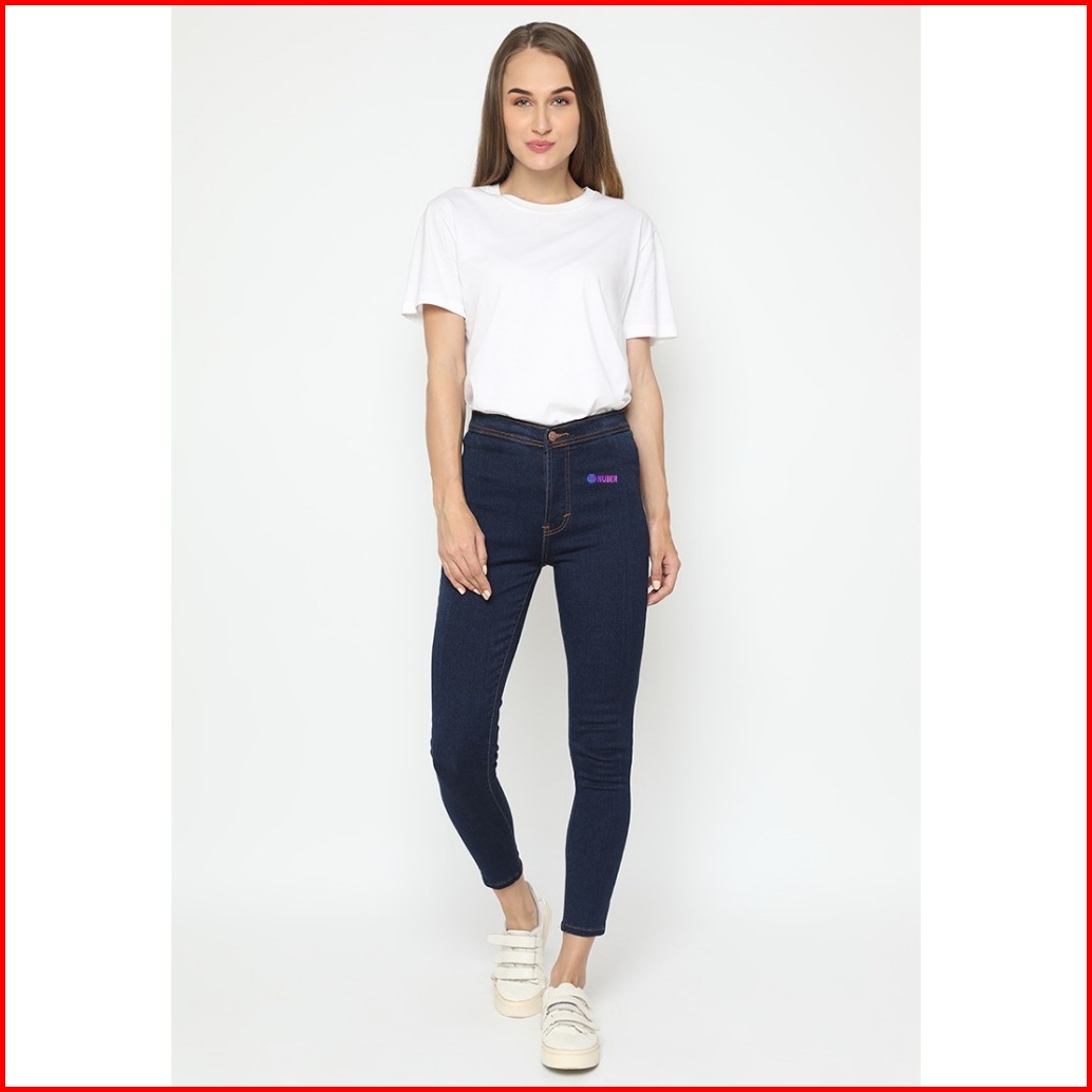 Nuber Skinny High Waist Celana Panjang Soft Jeans Petunia Hitam Black Navy Blue Cream Ivory