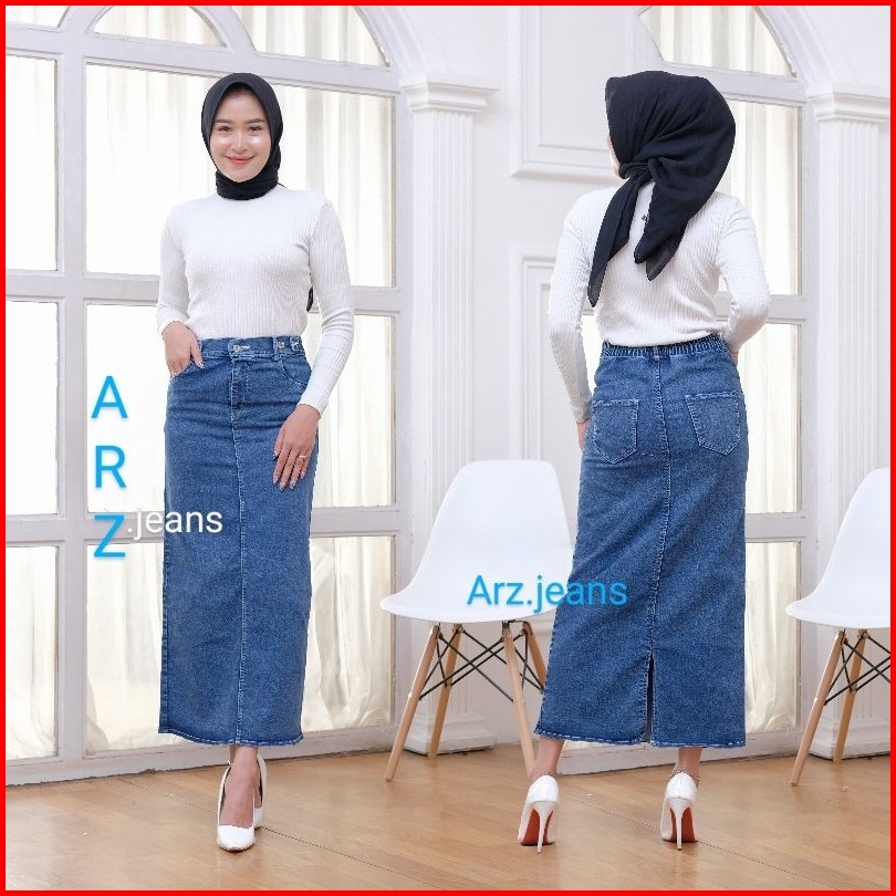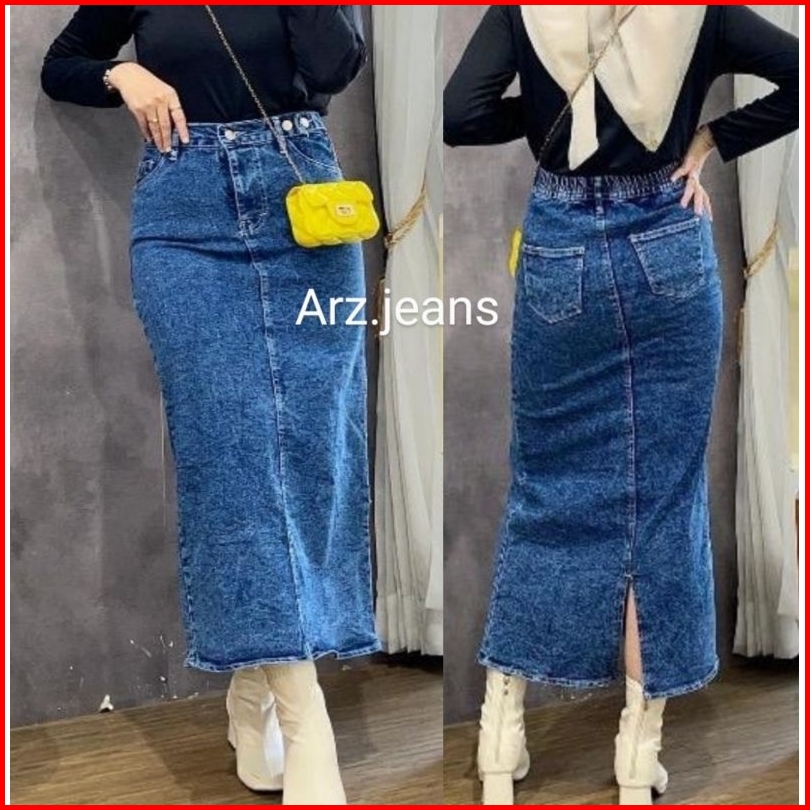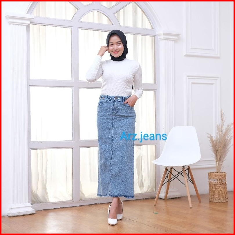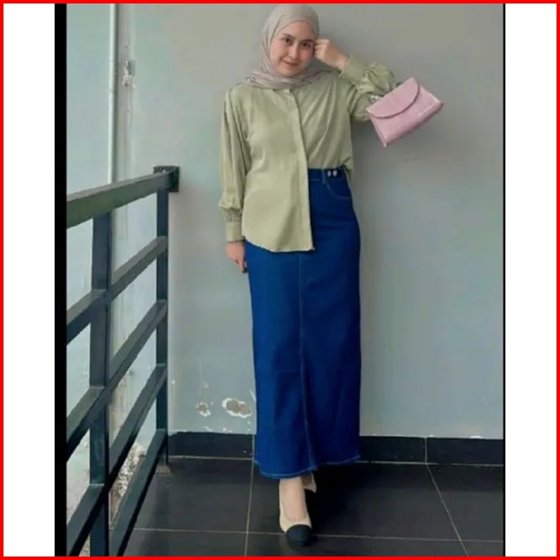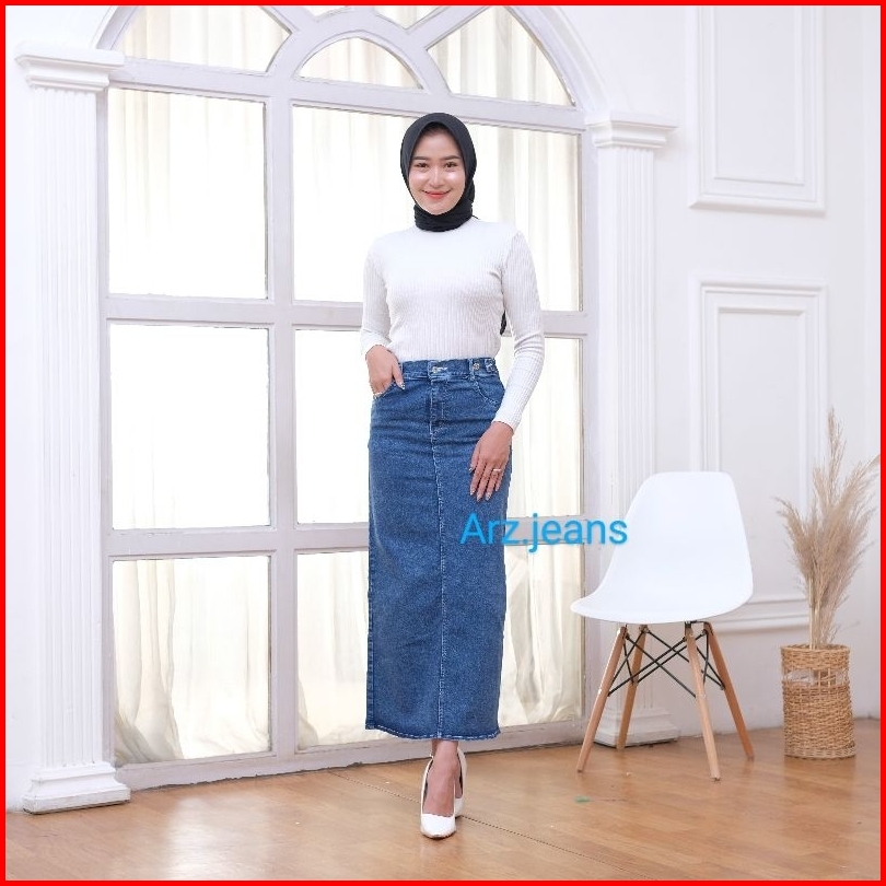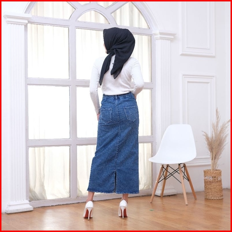 Trend Rok Jeans Bawahan Wanita Theana Street Slimm Tebal Nyaman