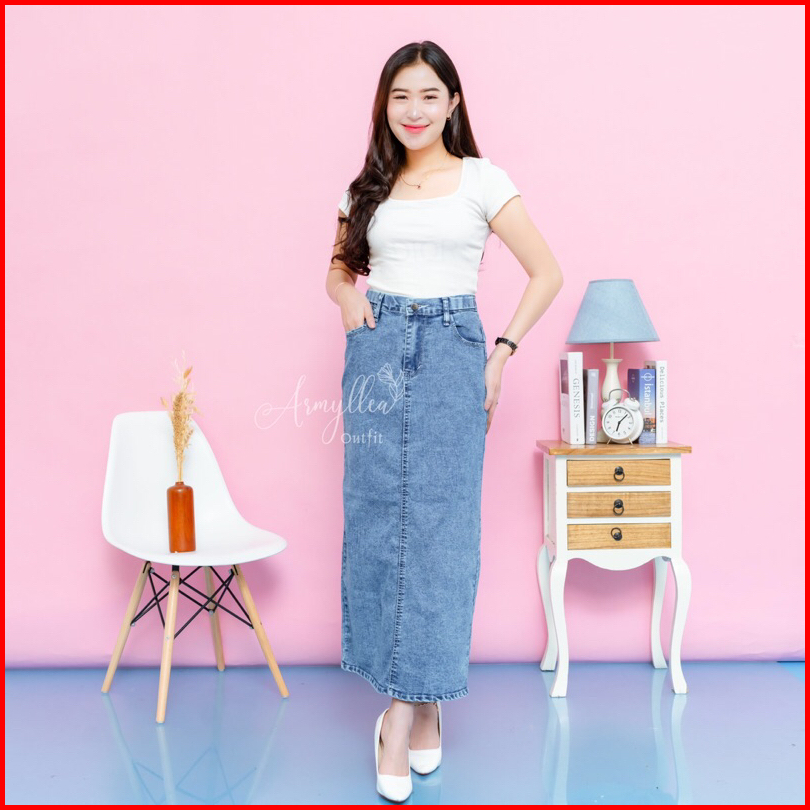 Rok Jeans Panjang Wanita Skirt Jeans Stretch Mulur Nyaman Theana Korean Style Highwaist Jumbo