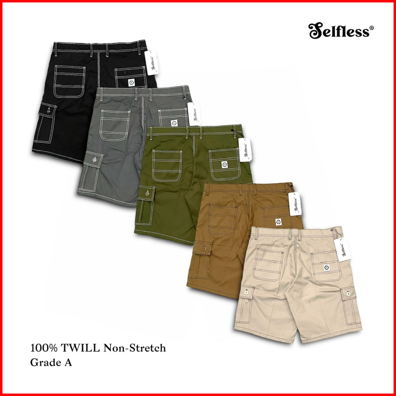 Selfless - Celana Cargo List Carpenter Pendek Pria Wanita Hitam Hijau Army Kream Abu Mocca Khaki