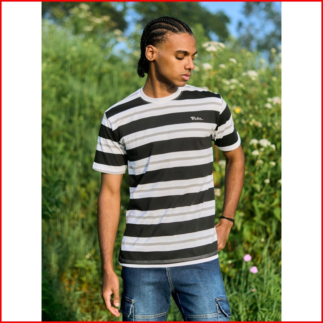 Fichino T-shirt Stripe Black Grey White Tss - 009