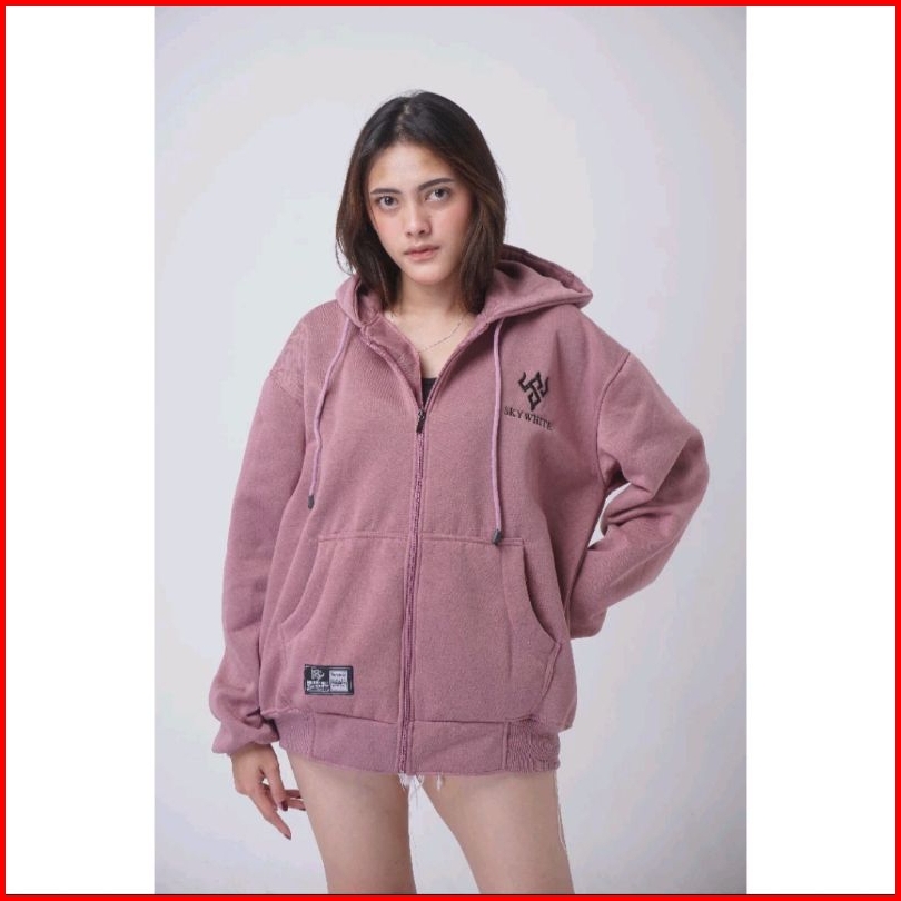 Hoodie Zipper Sweater Skywhite Bordir Timbul Bahan Gramasi 280 Halus Dan Tebal