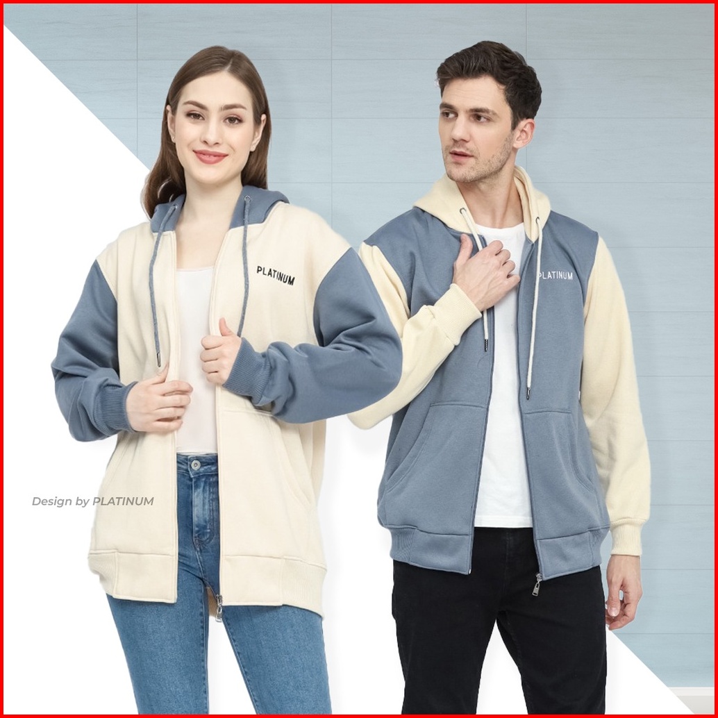 Platinum World Zipper Hoodie Resleting Kombinasi Pria Wanita - Jaket Sweater Couple Jumbo Xxl 3xl