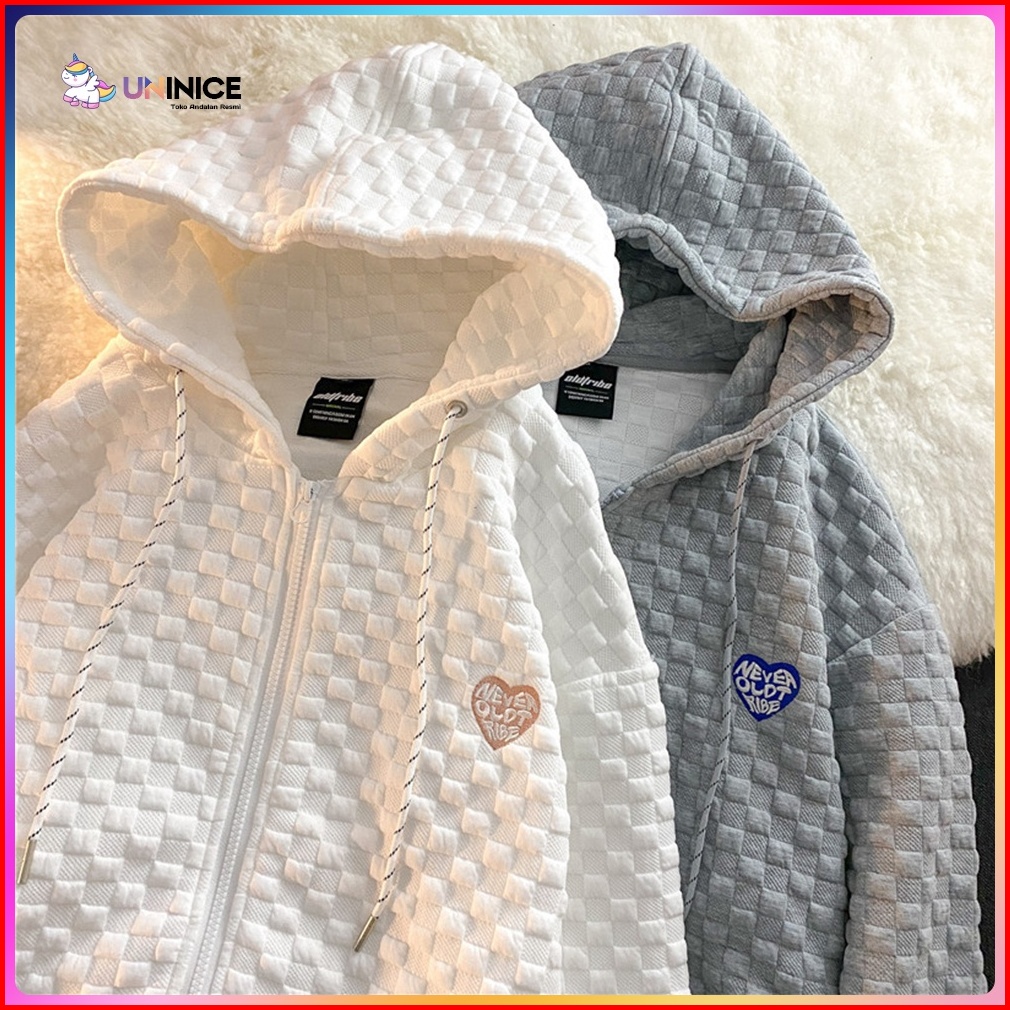 Uninice Jaket Hoodie Gaya Korea Modis Longgar Ritsleting Dan Penutup Kepala Jaket Outdoor
