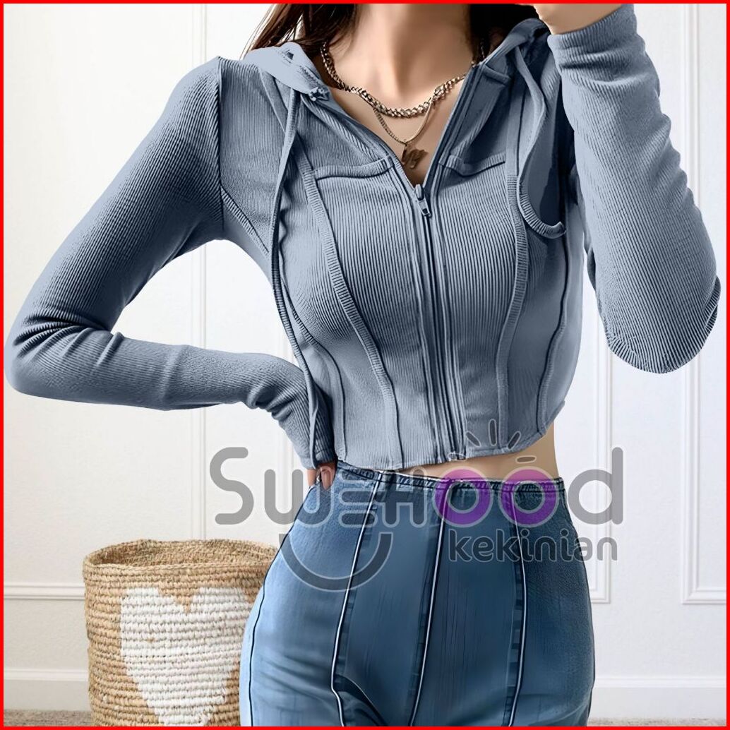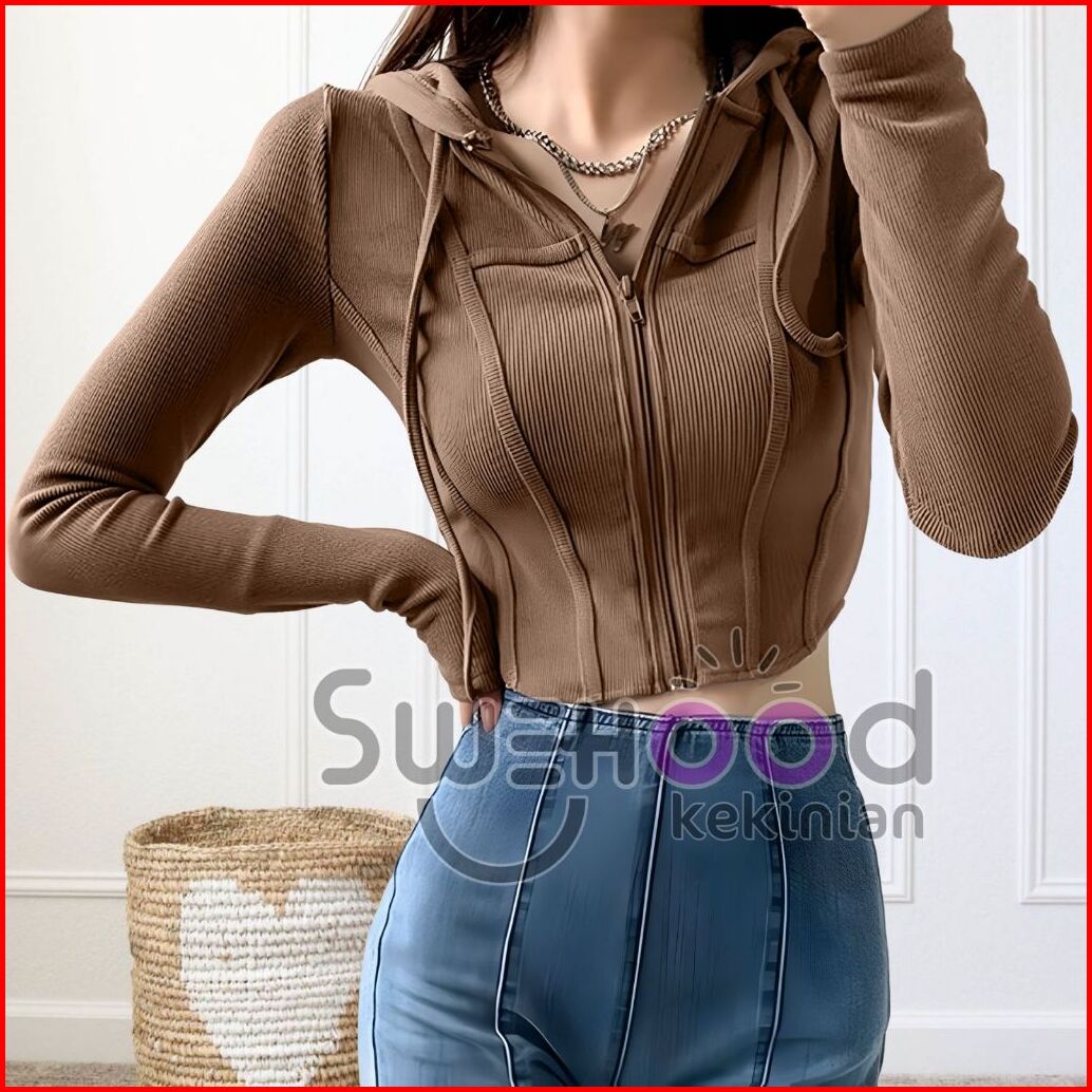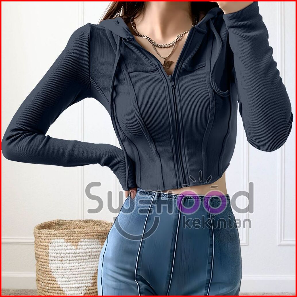 Grania Premium High Quality Jacket Zipper Hoodie Crop Top Wanita Kekinian Fashion Outfit Ootd Korean Style Model Terbaru