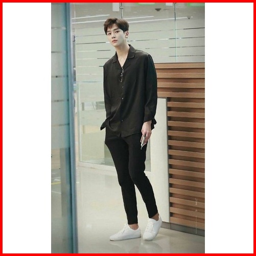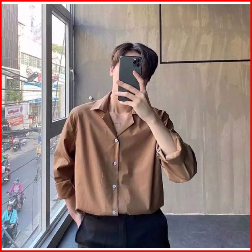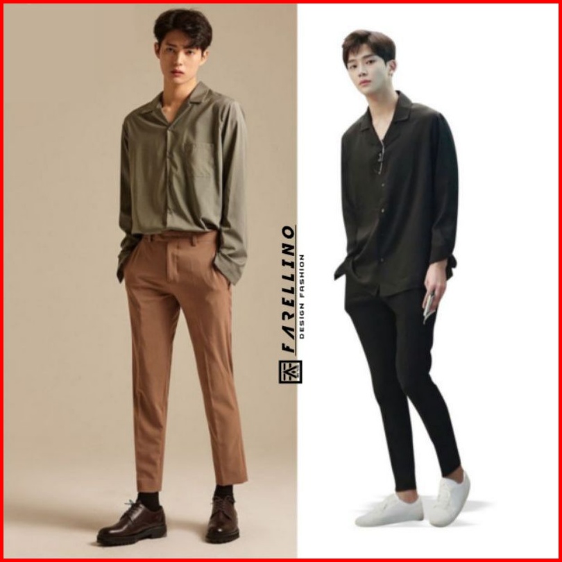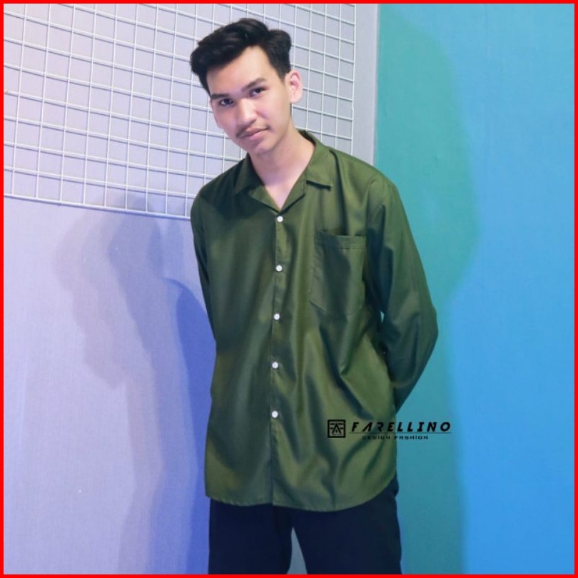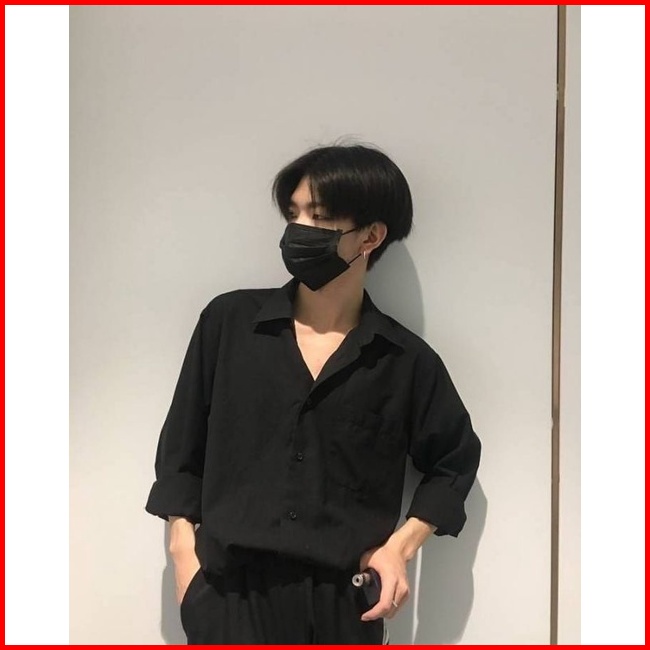 Baju Kemeja Pria Oversize Shirt Korean Style Basic Colour Warna Hitam Laki Banget Lengan Panjang Polos Bahan Toyobo Prem