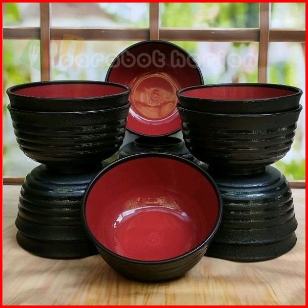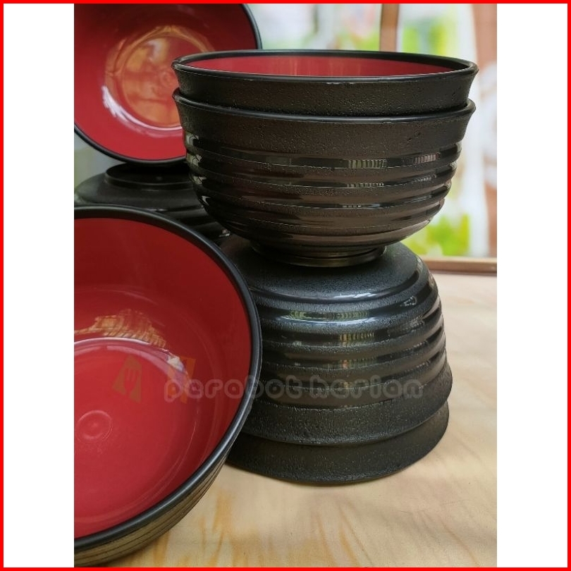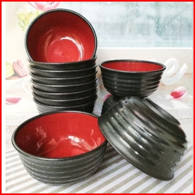 12pcs Mangkuk Bulat Hitam Polos Ulir 15cm Ramen Terbaru Kekinian Termurah Terlaris Berkuwalitas