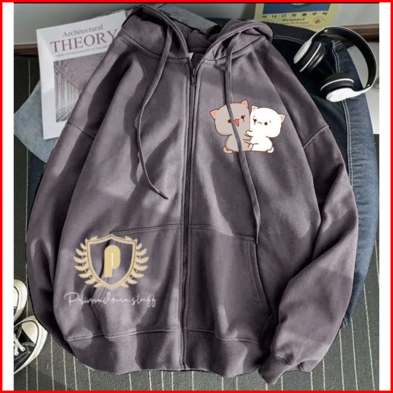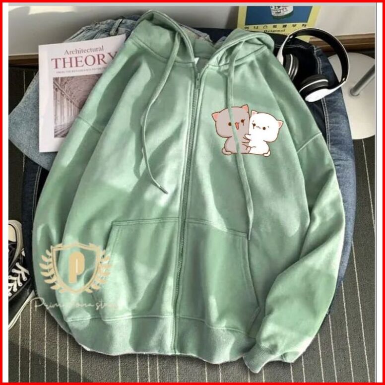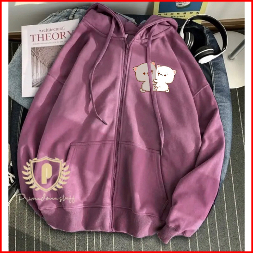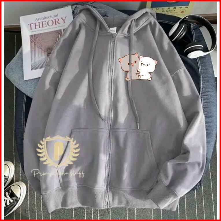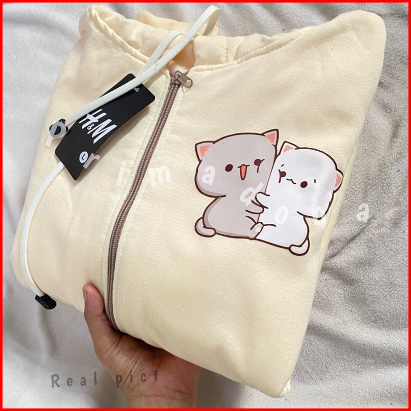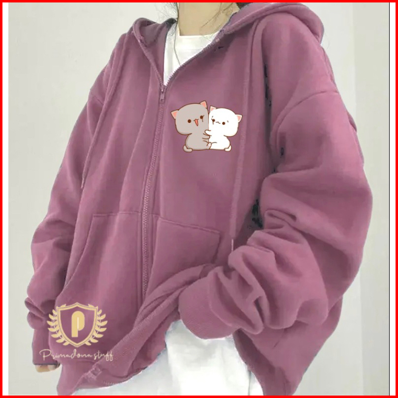 Hoodie Wanita Cute Cat Jaket Resleting Wanita Terbaru Couple Viral Murah L Xl Xxl Bahan Fleece Sweatshirt Ziper Hoodie W